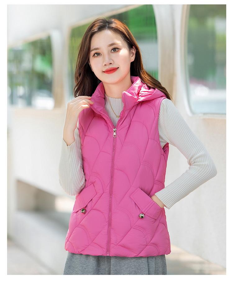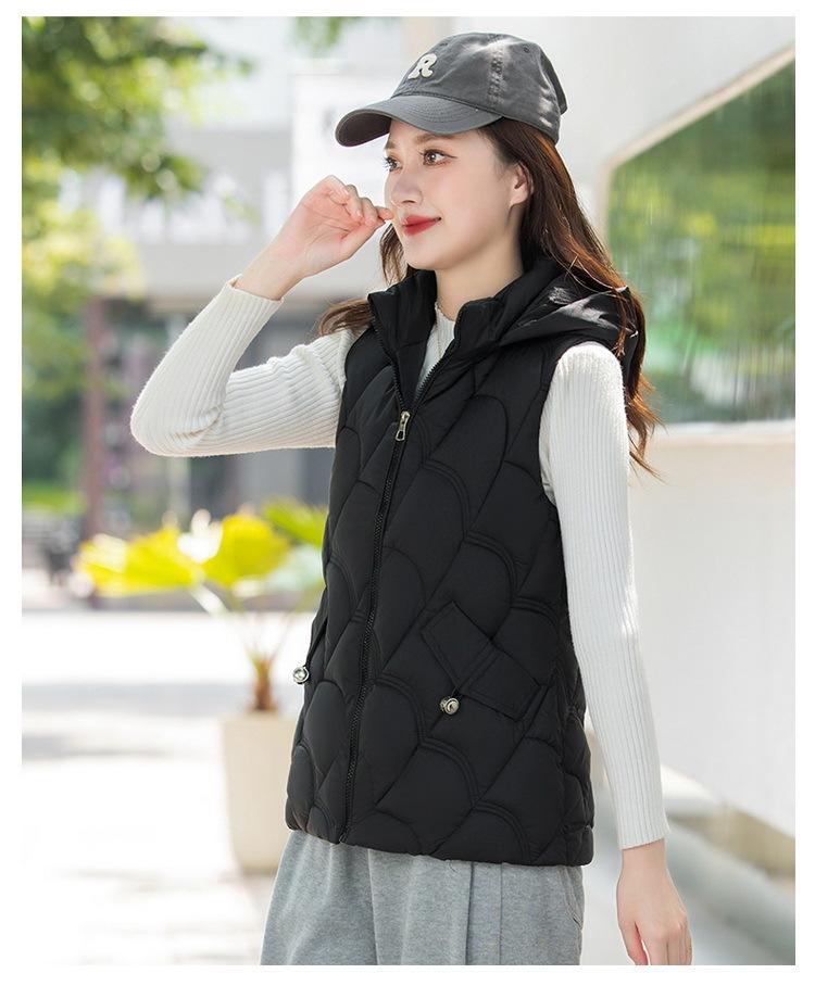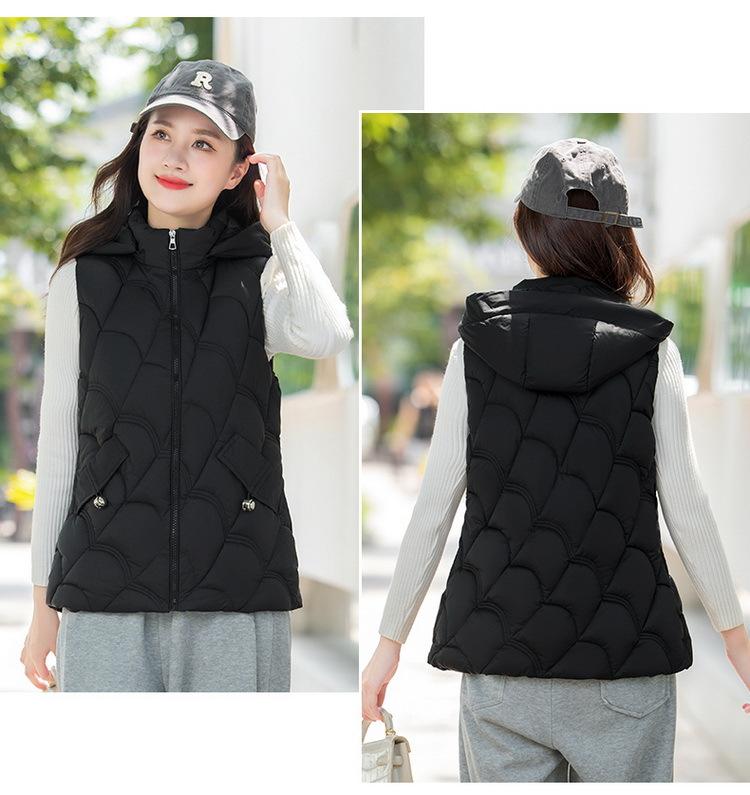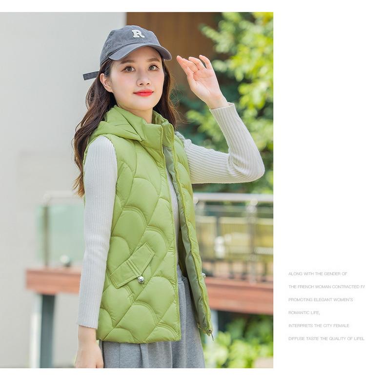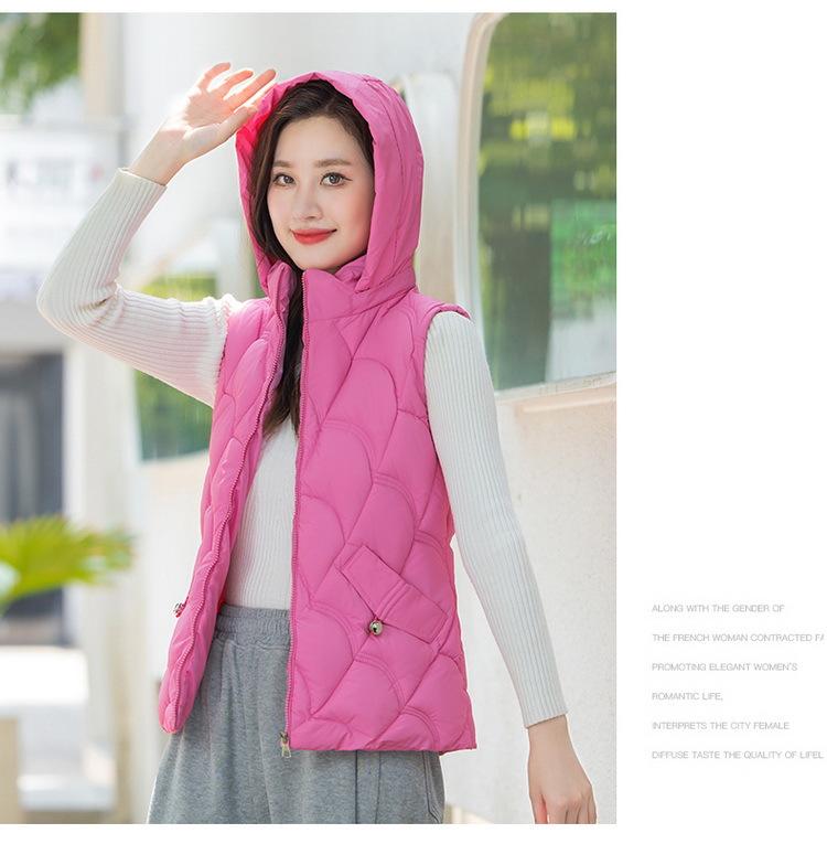 Chaleco de algodón para mujer para uso exterior otoño e invierno 2023 corto simple ajustado color sólido a prueba de frío versátil adelgazante chaleco con capucha para uso exterior