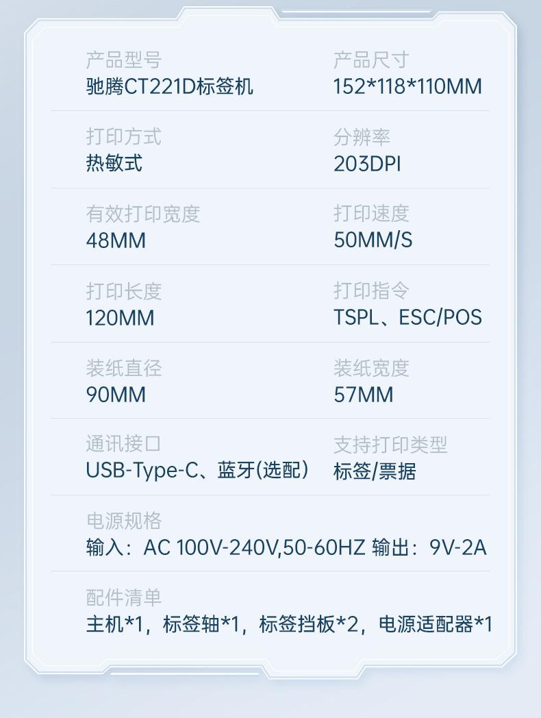 Impresora térmica de etiquetas transfronteriza Chiteng CT221D, para catering comercial, impresión de té con leche, impresora de recibos con Bluetooth