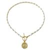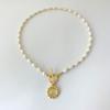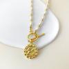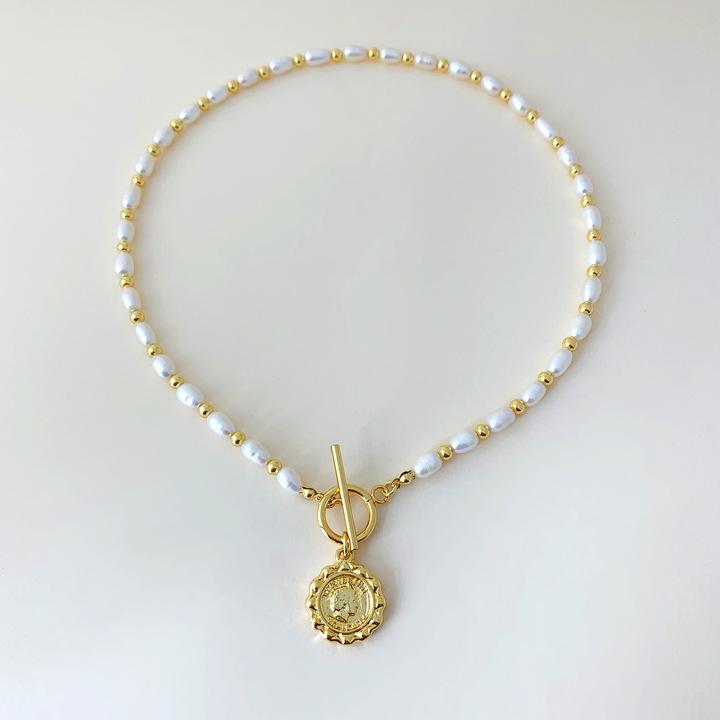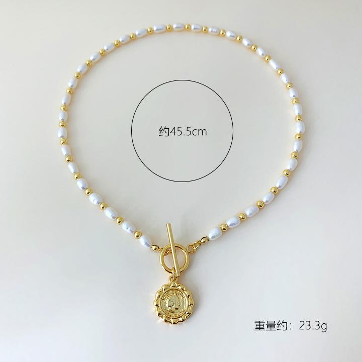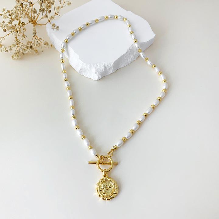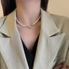 Collar vintage europeo y americano con perlas de agua dulce de forma barroca, diseño de nicho, collar con etiqueta de metal de moda