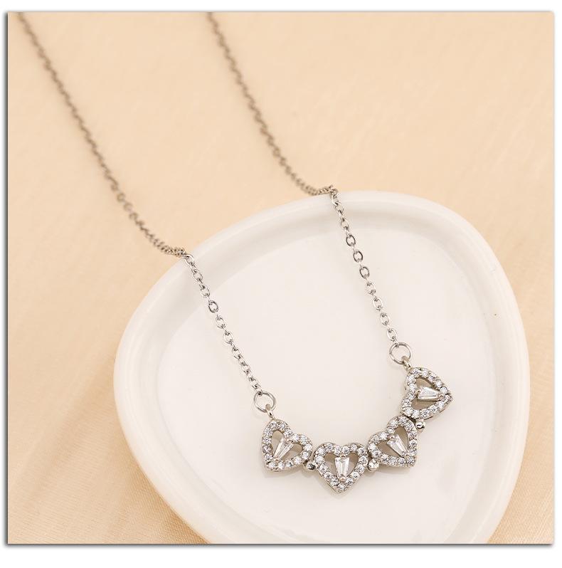 Venta directa de fábrica de collar de amor de cuatro hojas de trébol de cuatro hojas de acero de titanio de cuatro corazones para mujer, accesorios de cadena de clavícula multiusos en constante cambio de moda