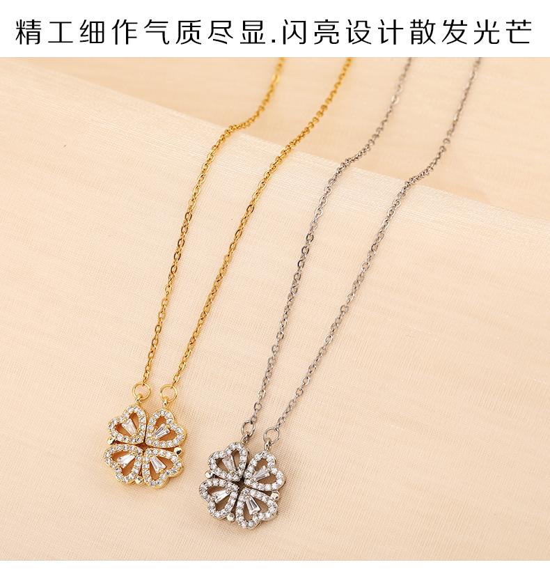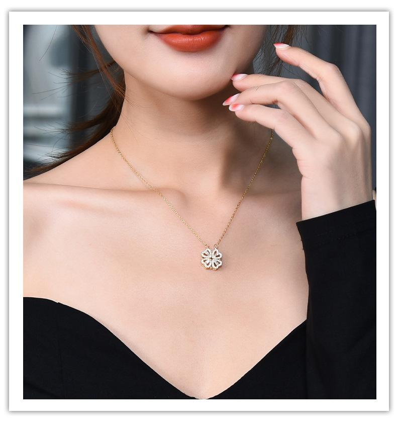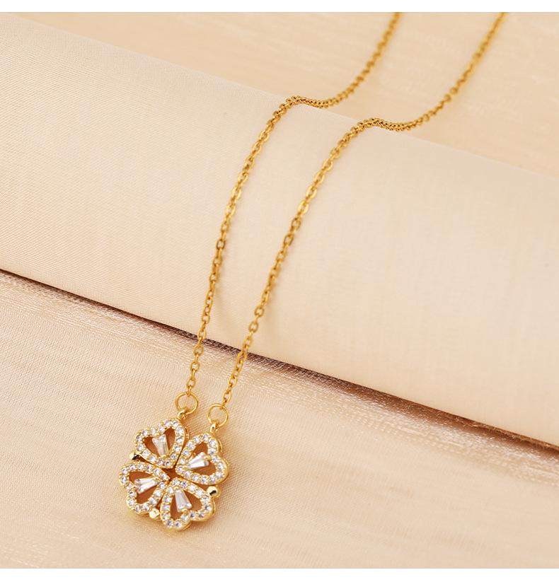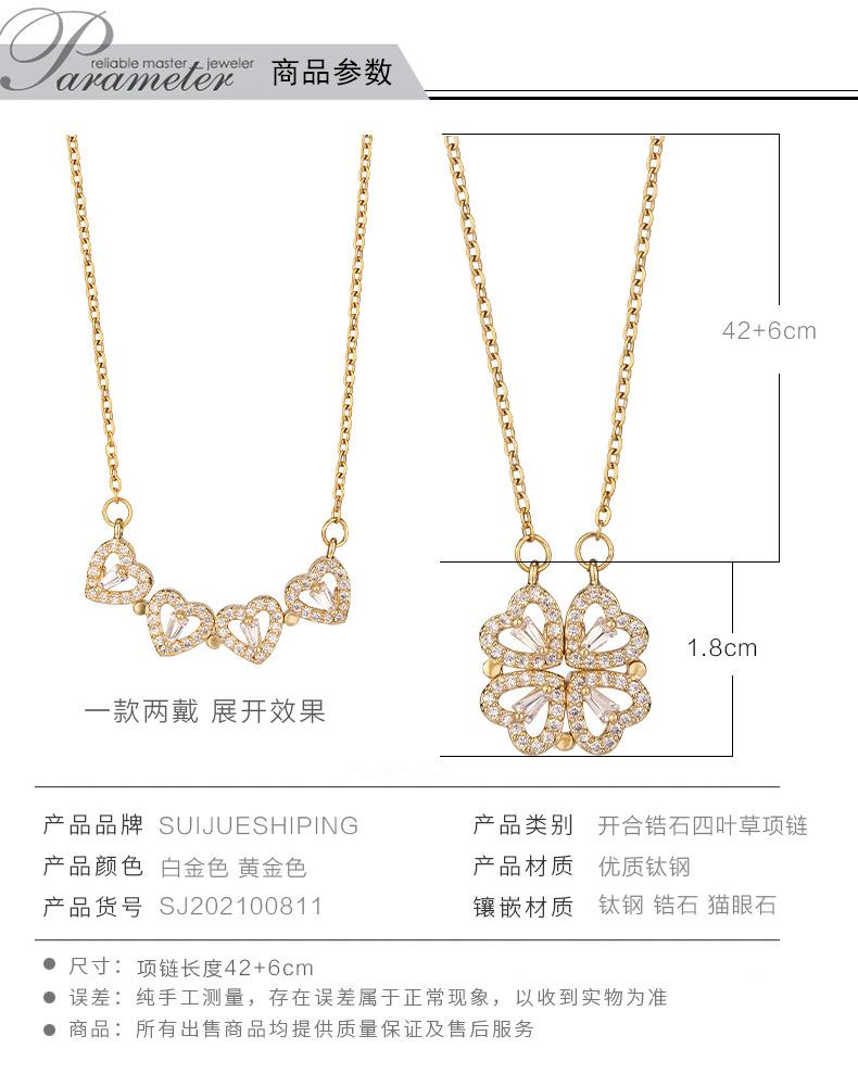 Venta directa de fábrica de un collar de trébol de cuatro hojas de dos piezas con apertura y cierre de corazón a corazón, una cadena de clavícula creativa plegable de amor de moda