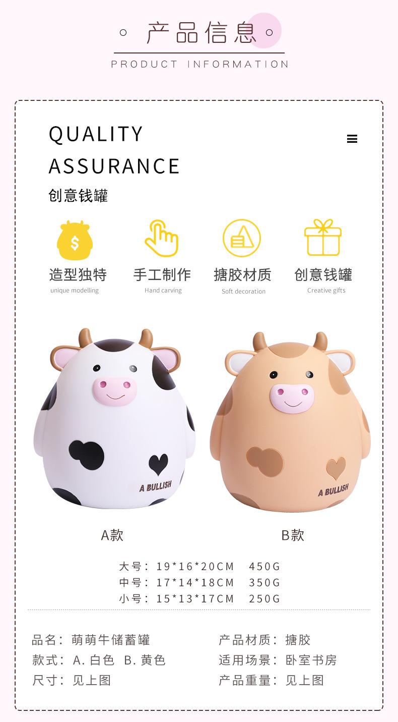 Hucha infantil de vinilo anticaída con diseño de vaca de dibujos animados, de gran venta transfronteriza, ideal para decorar el hogar, regalos creativos para el Día del Niño.