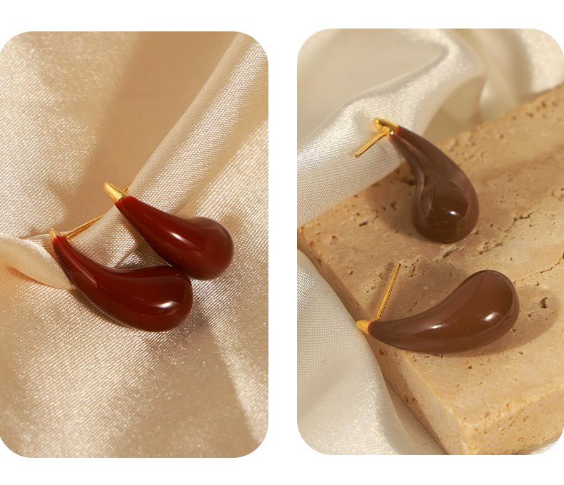 Pendientes de gota de agua con diseño personalizado, nuevos pendientes de temperamento rojo de red transfronterizo, pendientes esmaltados de oro de 18 quilates chapados en cobre