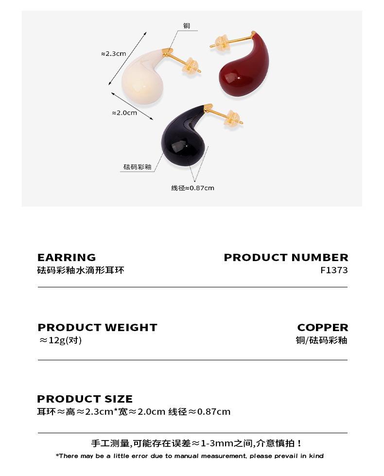 F1373-white glazed earrings, F1373-Black glazed earrings, F1373-wine red glazed earrings, F1373-Brown glazed earrings
