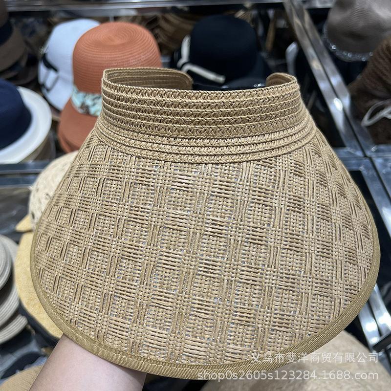 2023 Nuevo Sombrero de Paja a Cuadros de Verano para Mujer Sombrero para el Sol y Protector Solar para Mujer Sombrero Portátil Deportivo para Montar