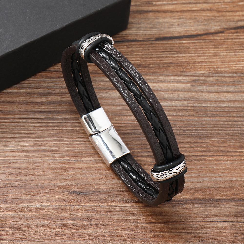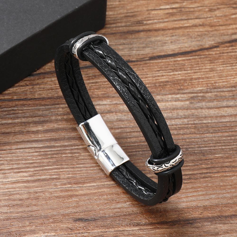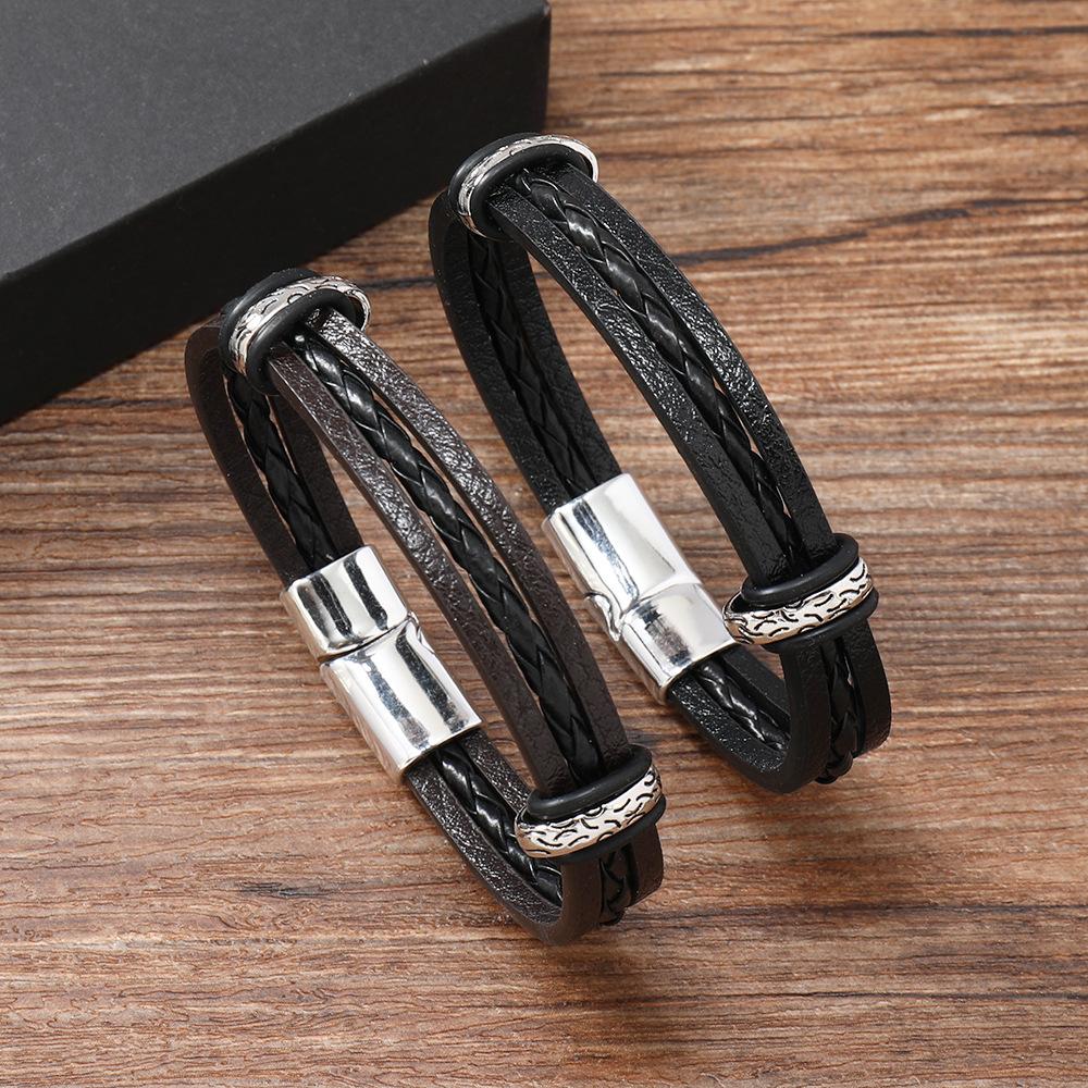 Pulsera de Cuero Joyería Comercio Exterior Transfronterizo Aleación Hebilla Magnética Pulsera Punk Europea y Americana Accesorios Amazon Punk Geométrico