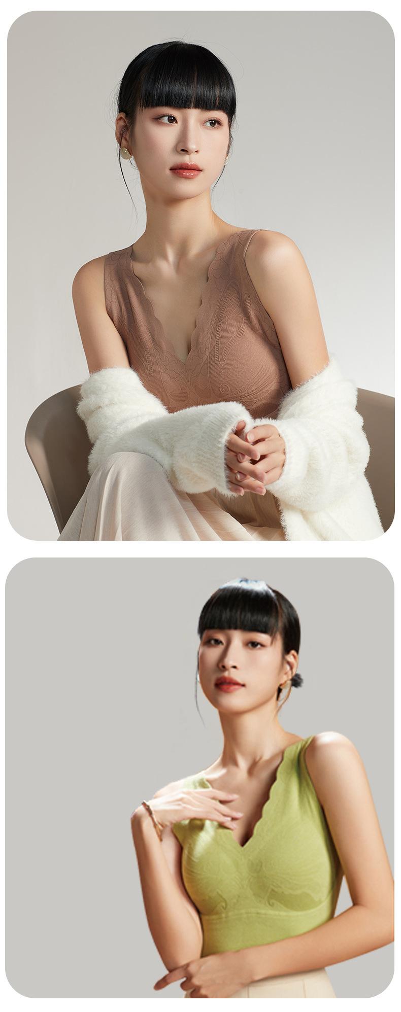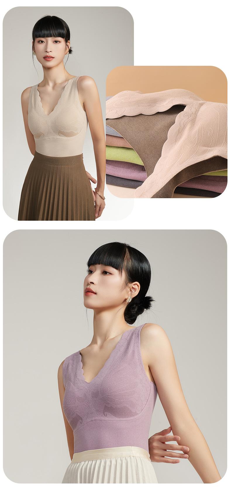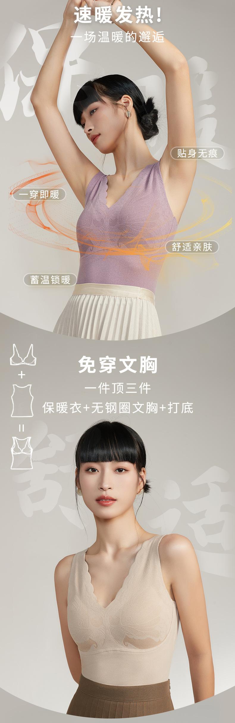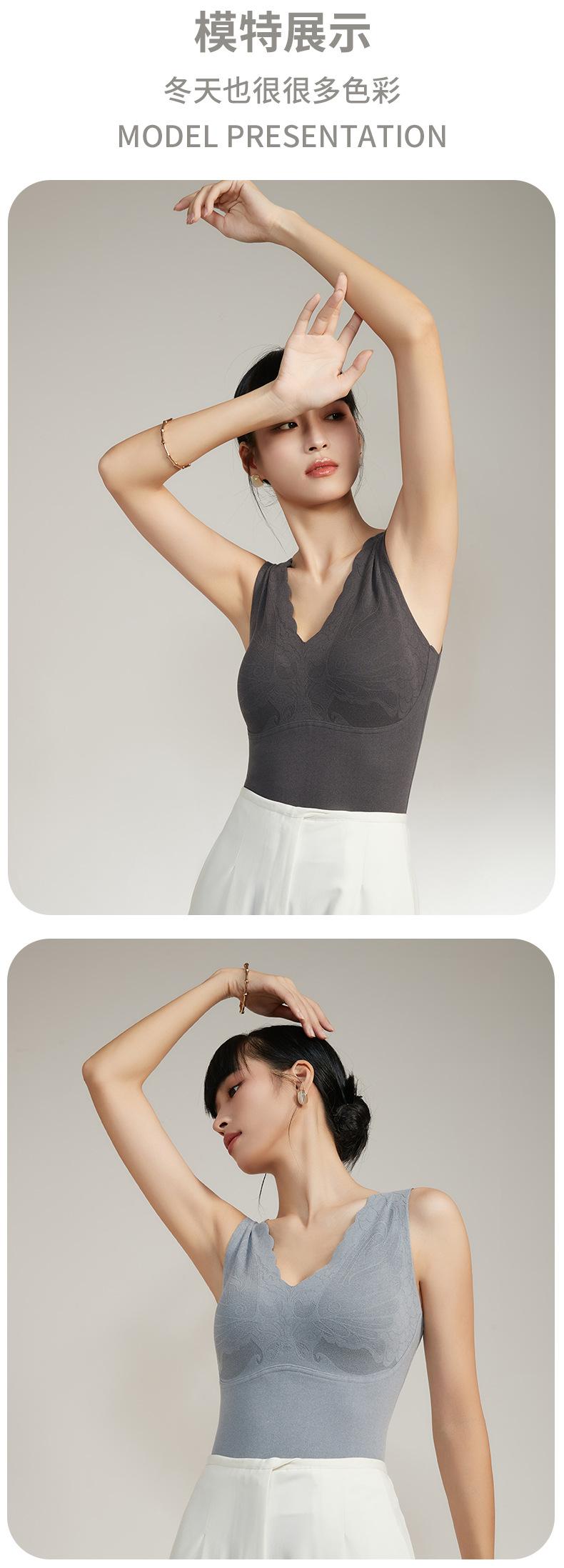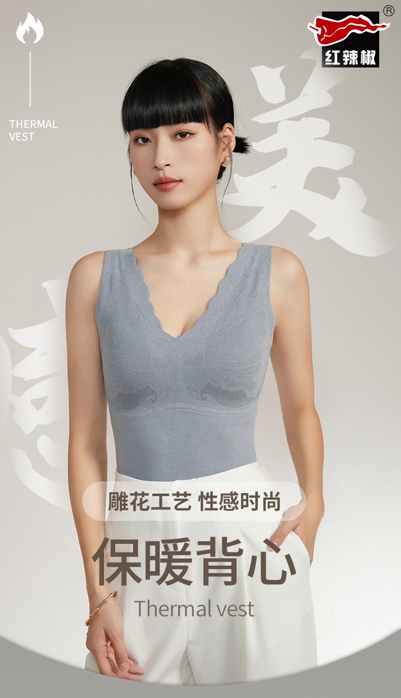 Chaleco cálido de otoño e invierno de pimiento rojo para mujer, ropa interior de grafeno con temperatura constante, cómoda y cálida con cuello en V y almohadilla para el pecho.