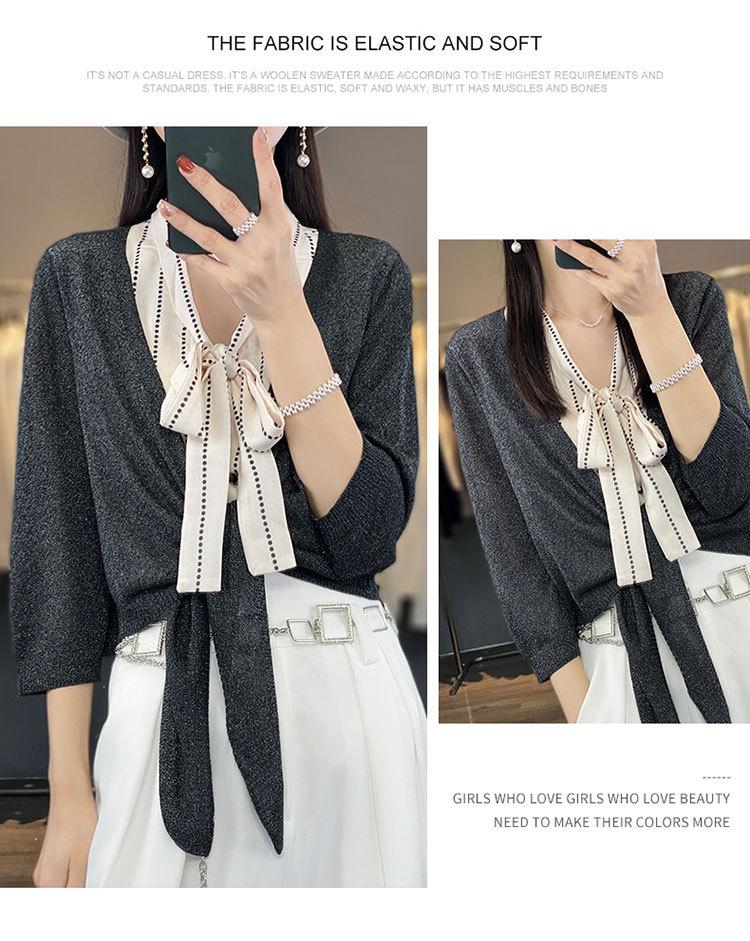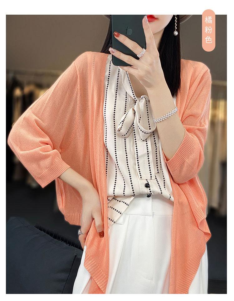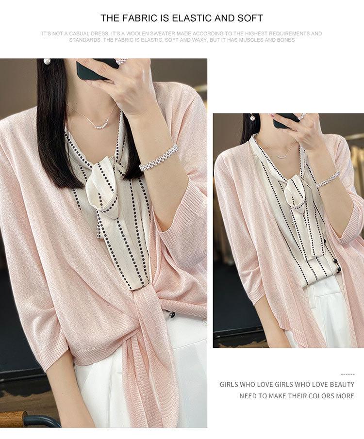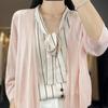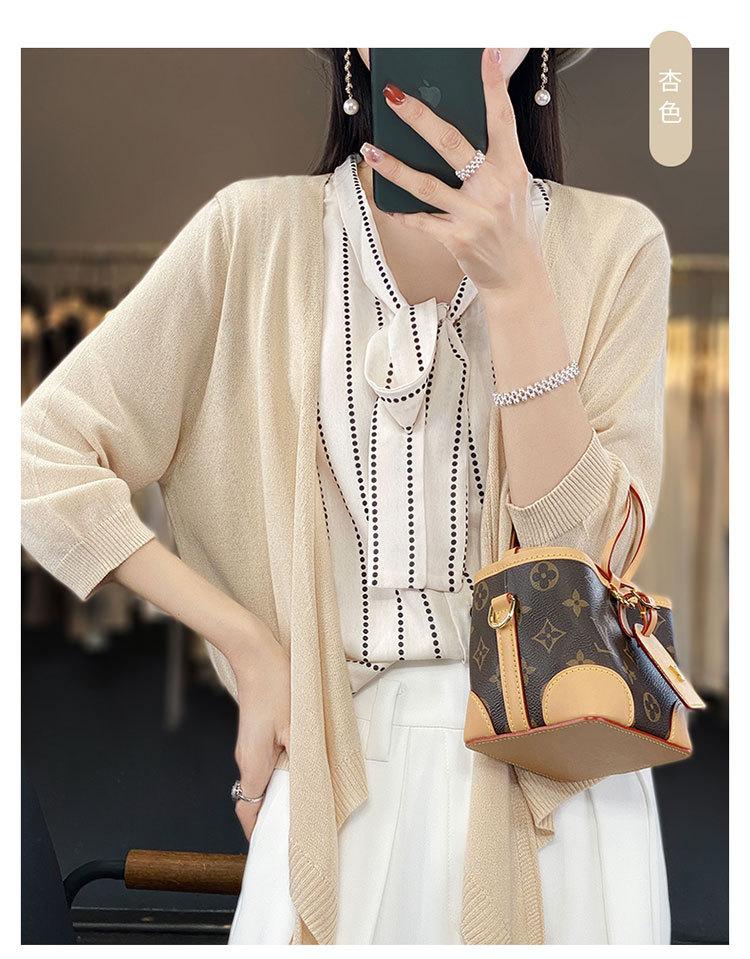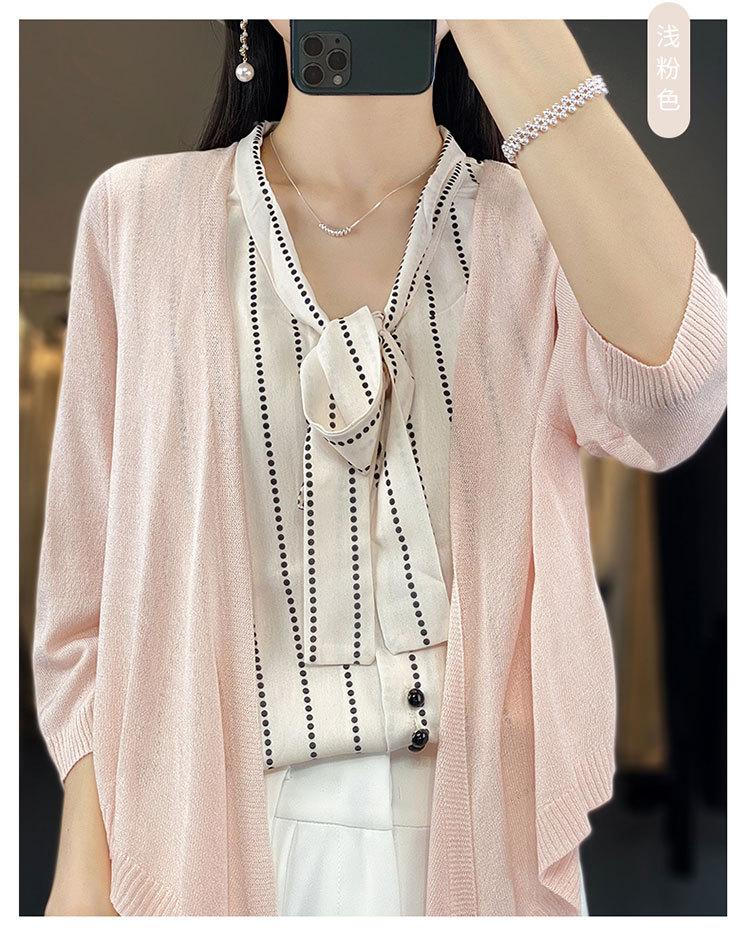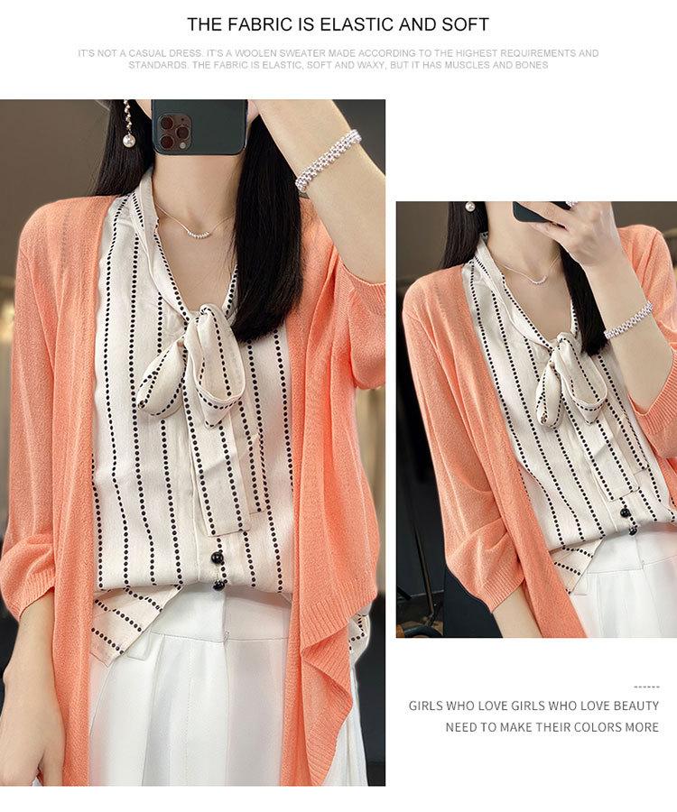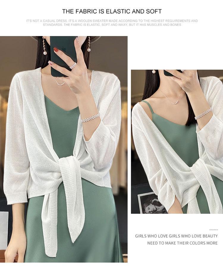 Chaqueta tipo cárdigan de punto con protector solar para mujer, chal pequeño de primavera de 2023, camisa fina de seda de manga larga con aire acondicionado