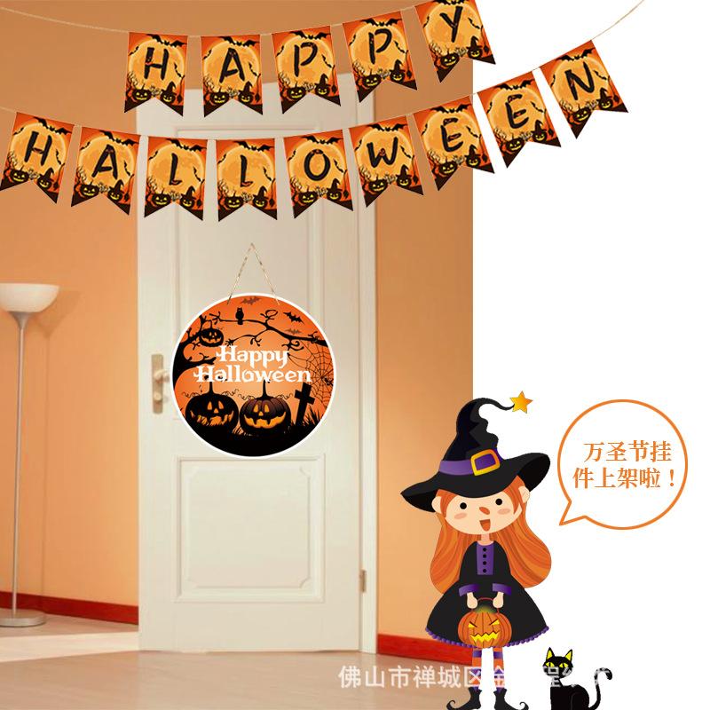 Decoración de fiesta de Halloween transfronteriza, nueva, para colgar en la puerta, de papel, para colgar en la pared, con diseño de fondo y accesorios