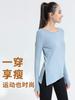 Top Deportivo Acanalado Europeo y Americano para Mujer de Manga Larga Ajustado Ropa de Yoga Irregular con Abertura para Correr Ropa de Fitness Camiseta
