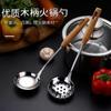 Cuchara de sopa de acero inoxidable 304 en stock, para uso doméstico, para restaurante, colador, utensilios de cocina, cuchara de madera maciza de estilo japonés creativo.