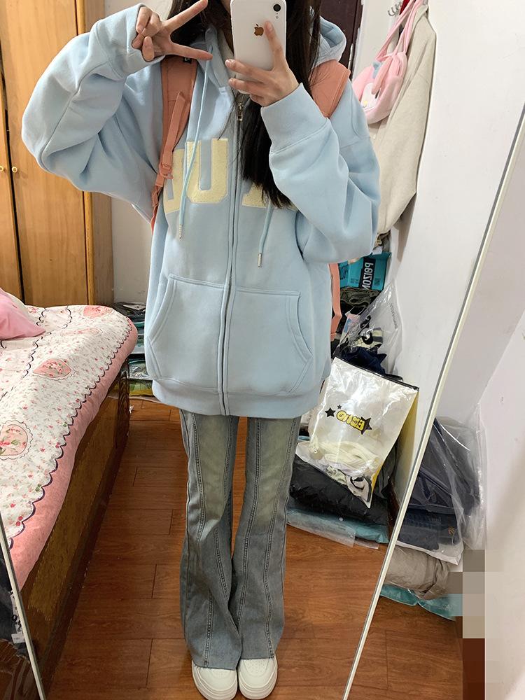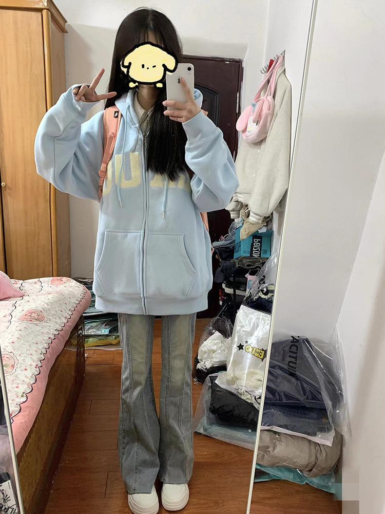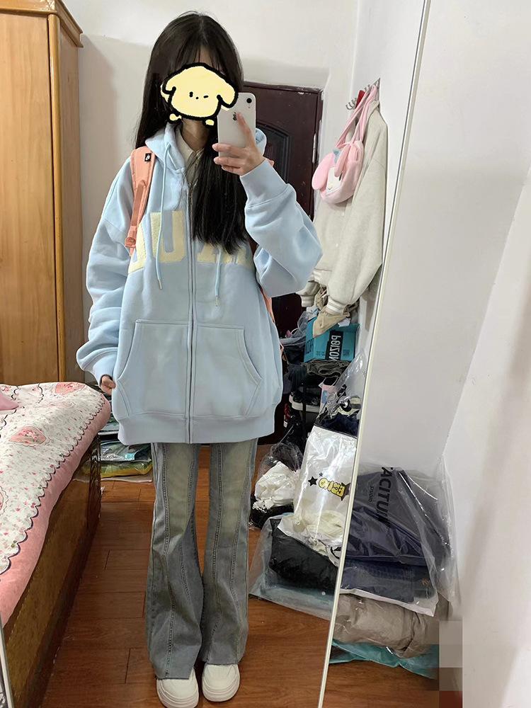 Chaqueta tipo cárdigan retro estilo americano para mujer, primavera y otoño, holgada, informal, con cremallera y capucha, traje de béisbol a la moda