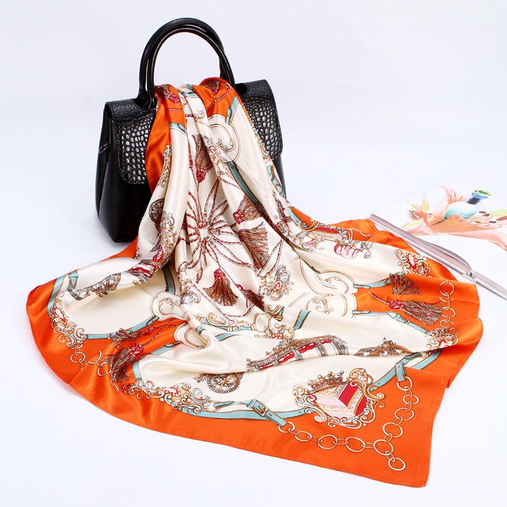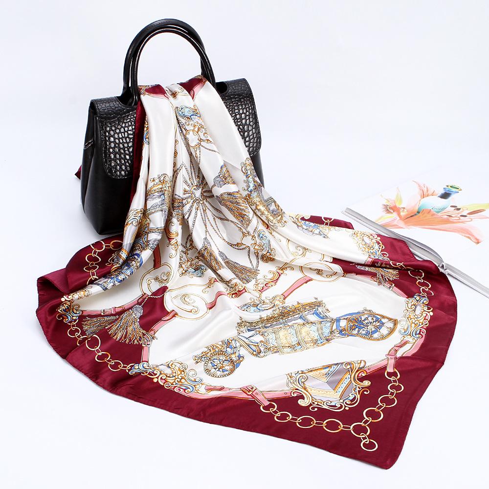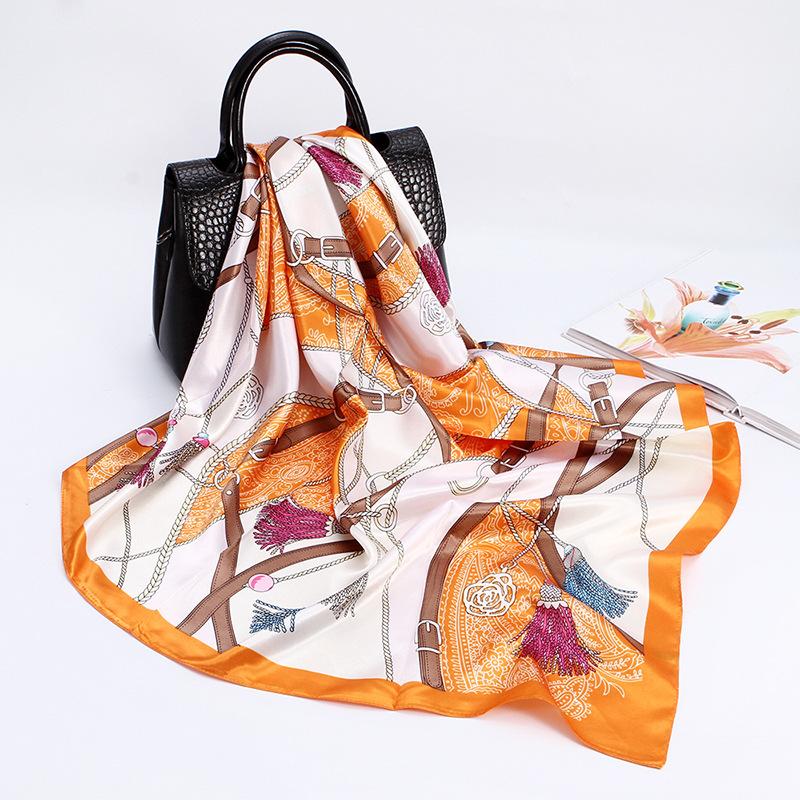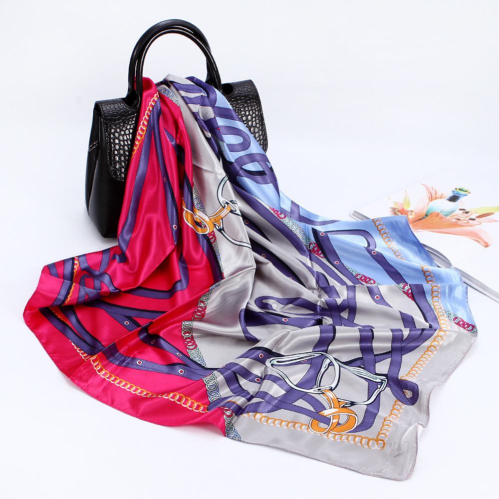 Bufanda cuadrada grande, bufanda de seda, bufanda de mujer, bufanda de seda sintética, bufanda de regalo, nueva bufanda de satén, bufanda de satén estampada, chal al por mayor