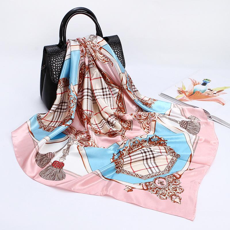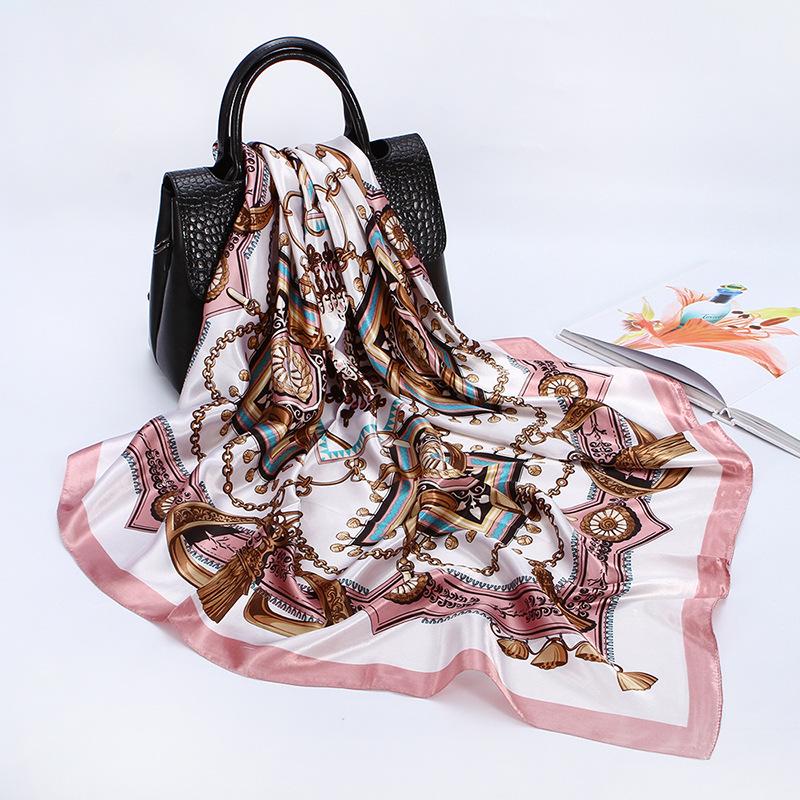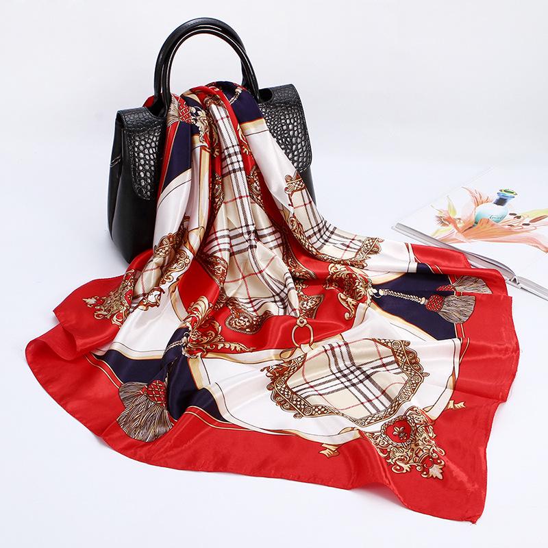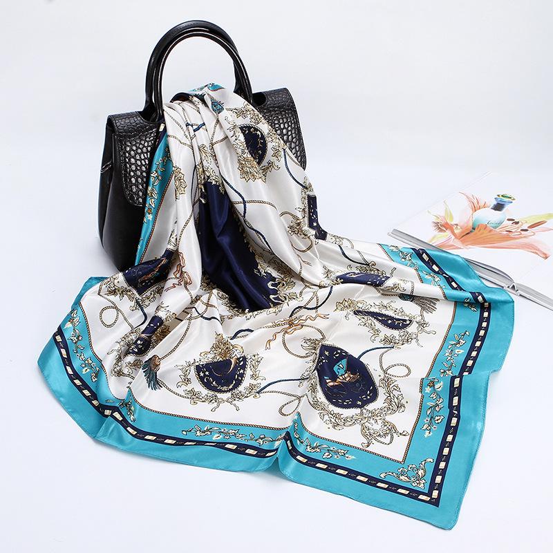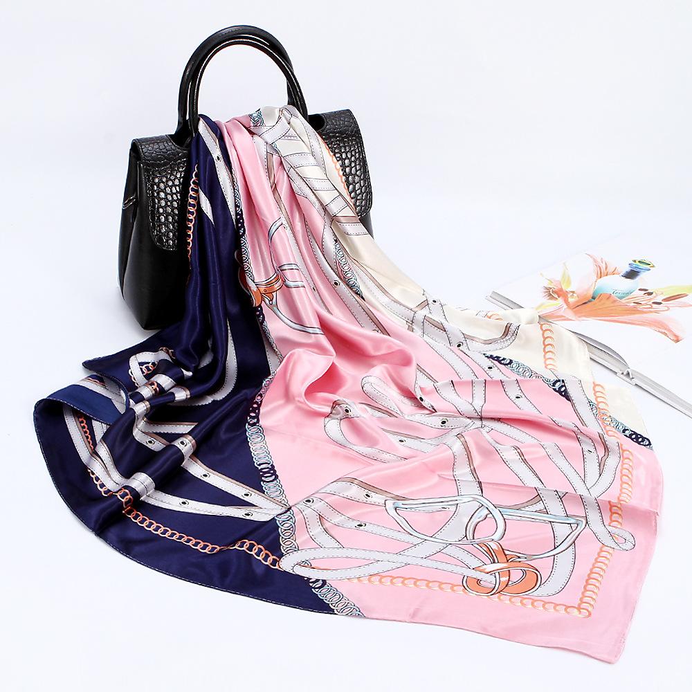 Bufanda cuadrada grande, bufanda de seda, bufanda de mujer, bufanda de seda sintética, bufanda de regalo, nueva bufanda de satén, bufanda de satén estampada, chal al por mayor