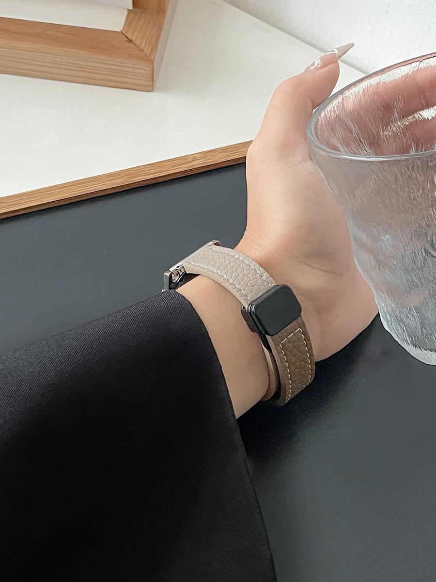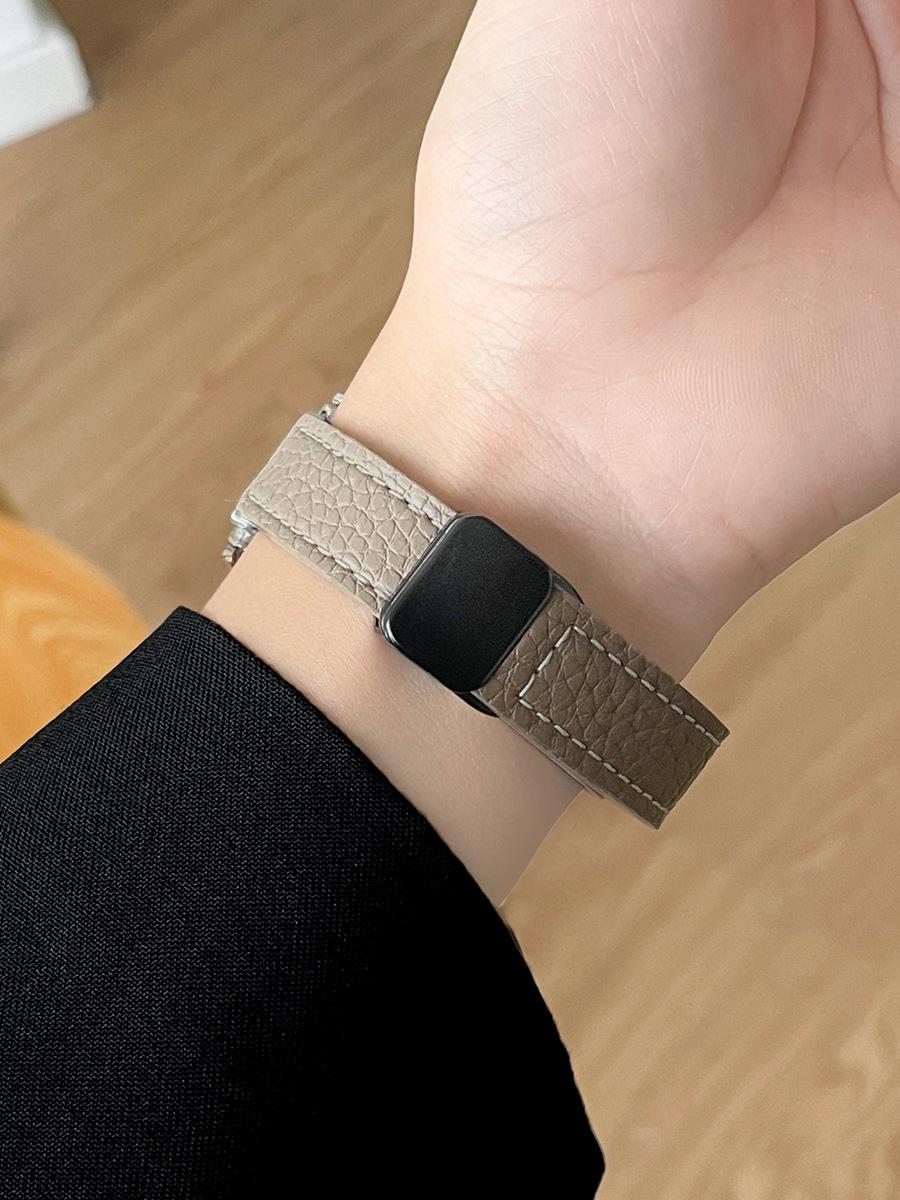Lychee pattern magnetic suction buckle-burnt brown mixed milk apricot