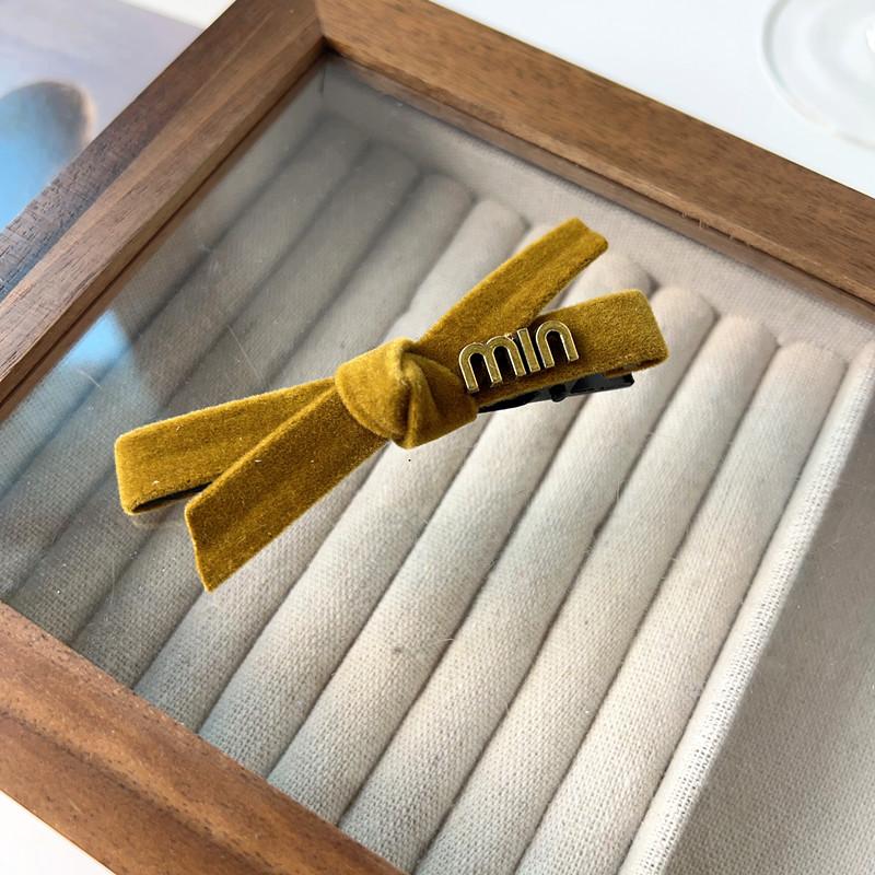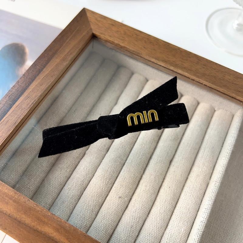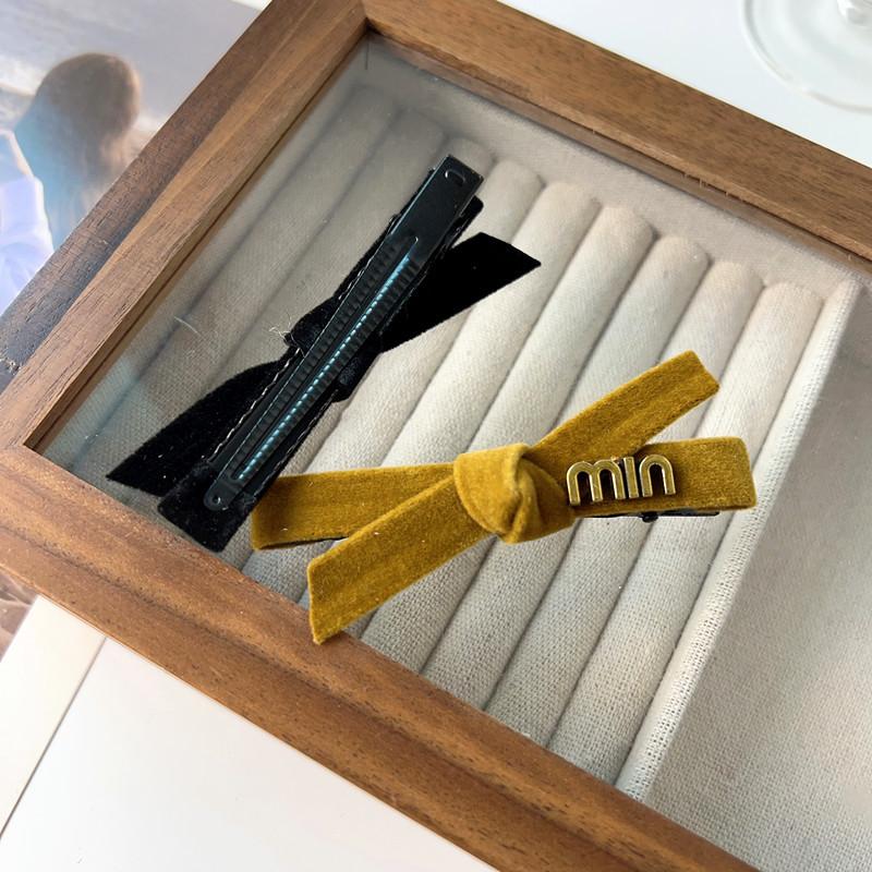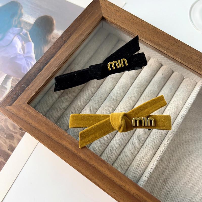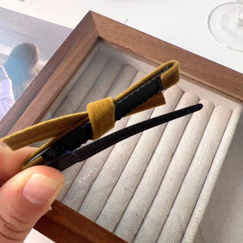 Horquilla de terciopelo con lazo, estilo coreano, elegante horquilla con letras, accesorios para el cabello, estilo retro francés, pinza de pico de pato