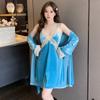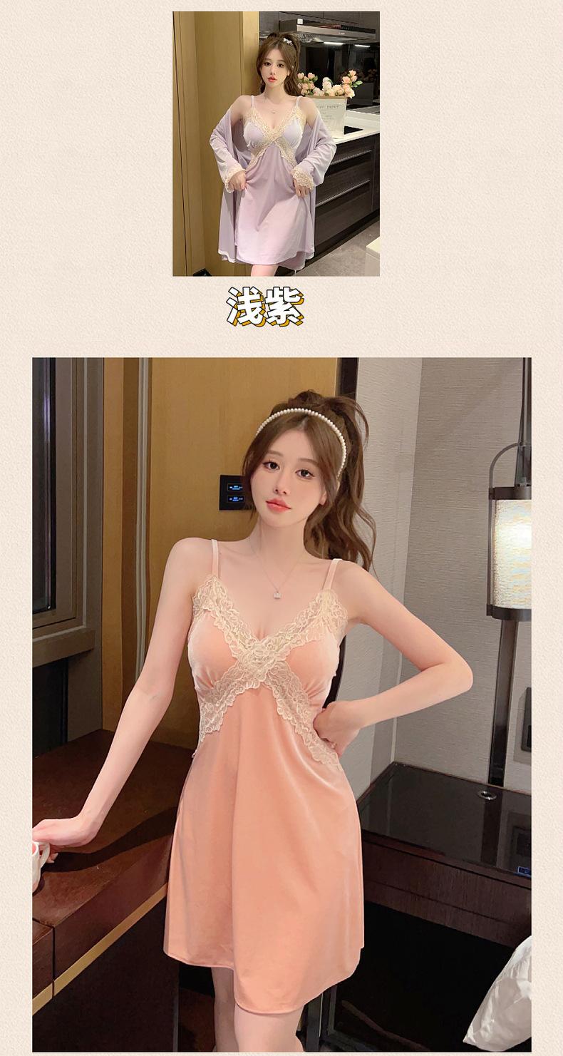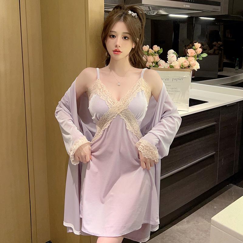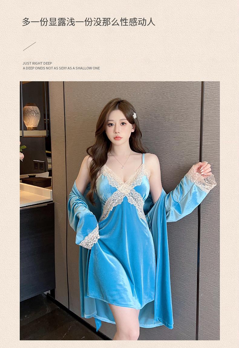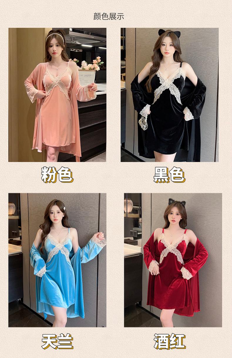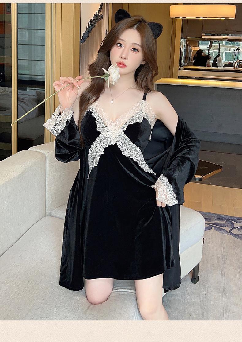 Pijama de terciopelo dorado para mujer, nuevo otoño e invierno, con almohadilla para el pecho, camisón sexy de dos piezas con encaje, estilo Pure Desire, ropa para el hogar