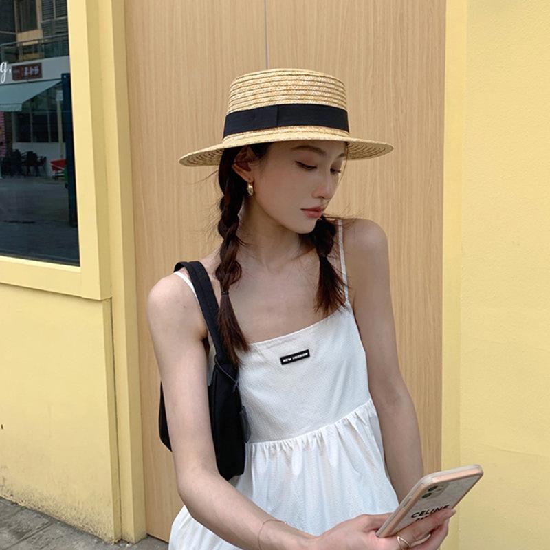Sombrero de paja Nazha de 7 cm, estilo similar, para verano, protector solar, para vacaciones en la playa, estilo versátil.