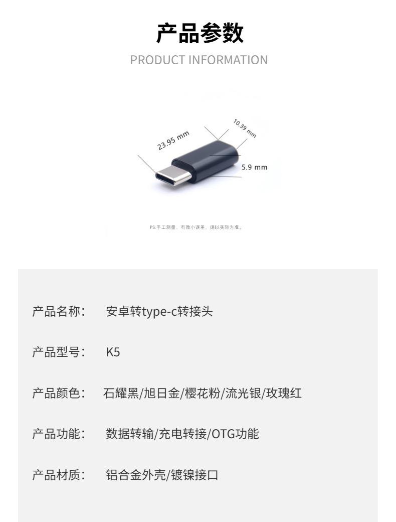 Android to type-c shiyao black (k5), Android to type-c rose red (k5), Android to type-c rising sun gold (k5), ...