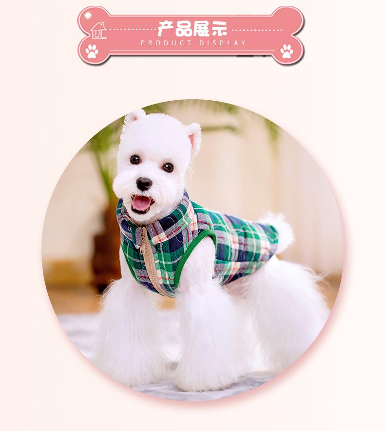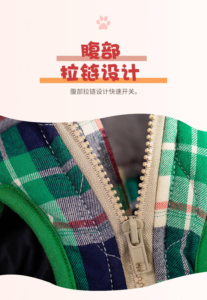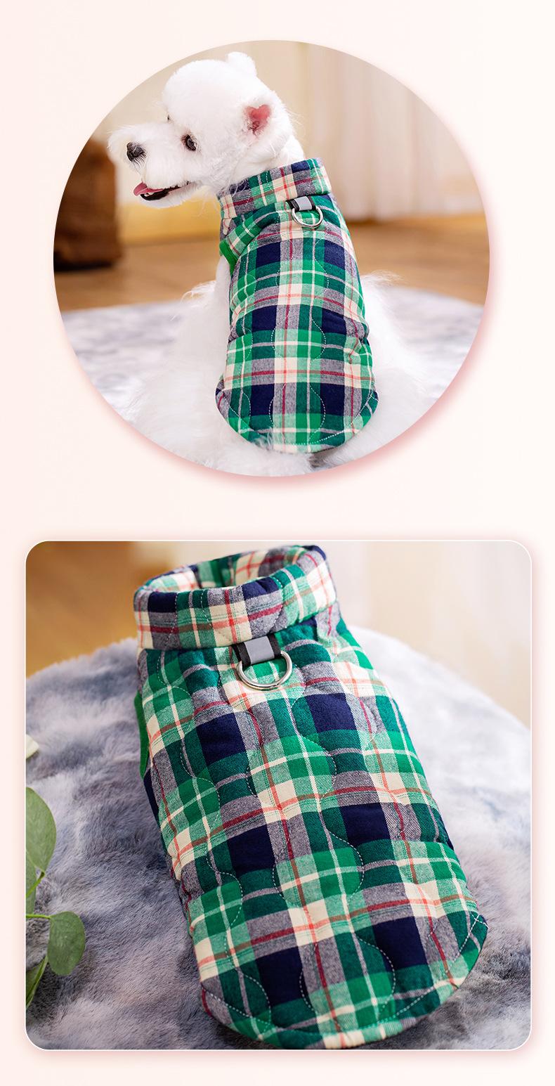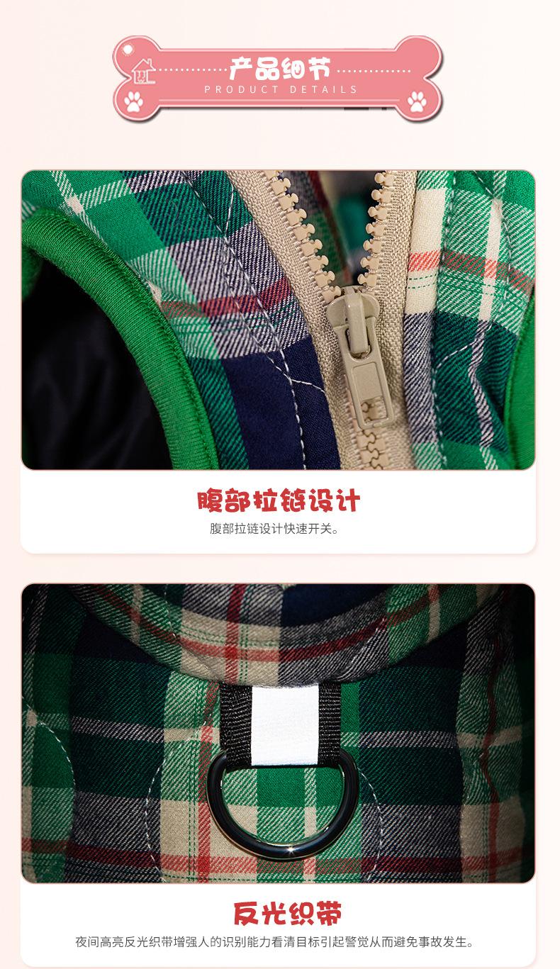 Abrigo acolchado de algodón con calabaza a cuadros escoceses verdes, chaqueta con cremallera abierta en el vientre, chaqueta para mascotas de otoño e invierno, abrigo acolchado de algodón