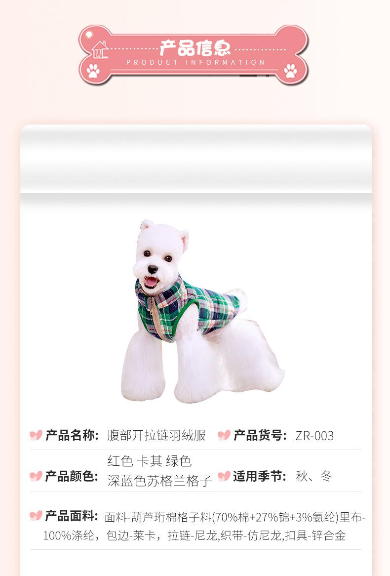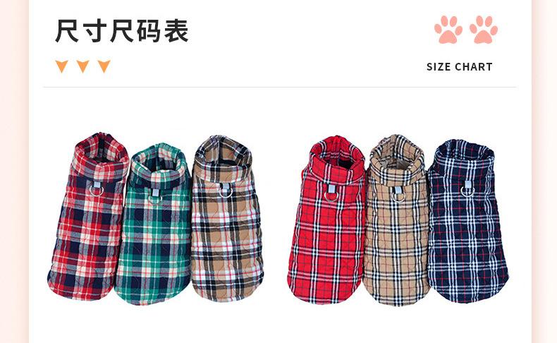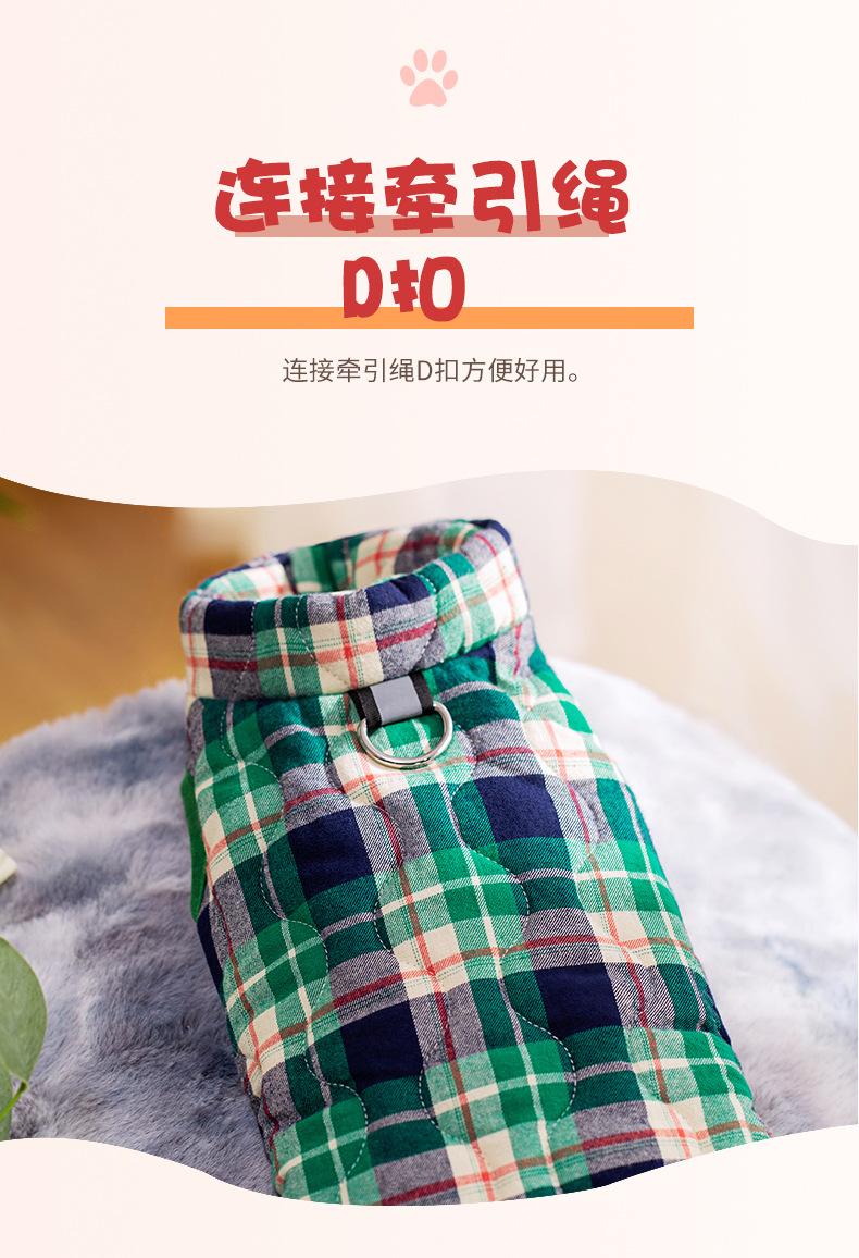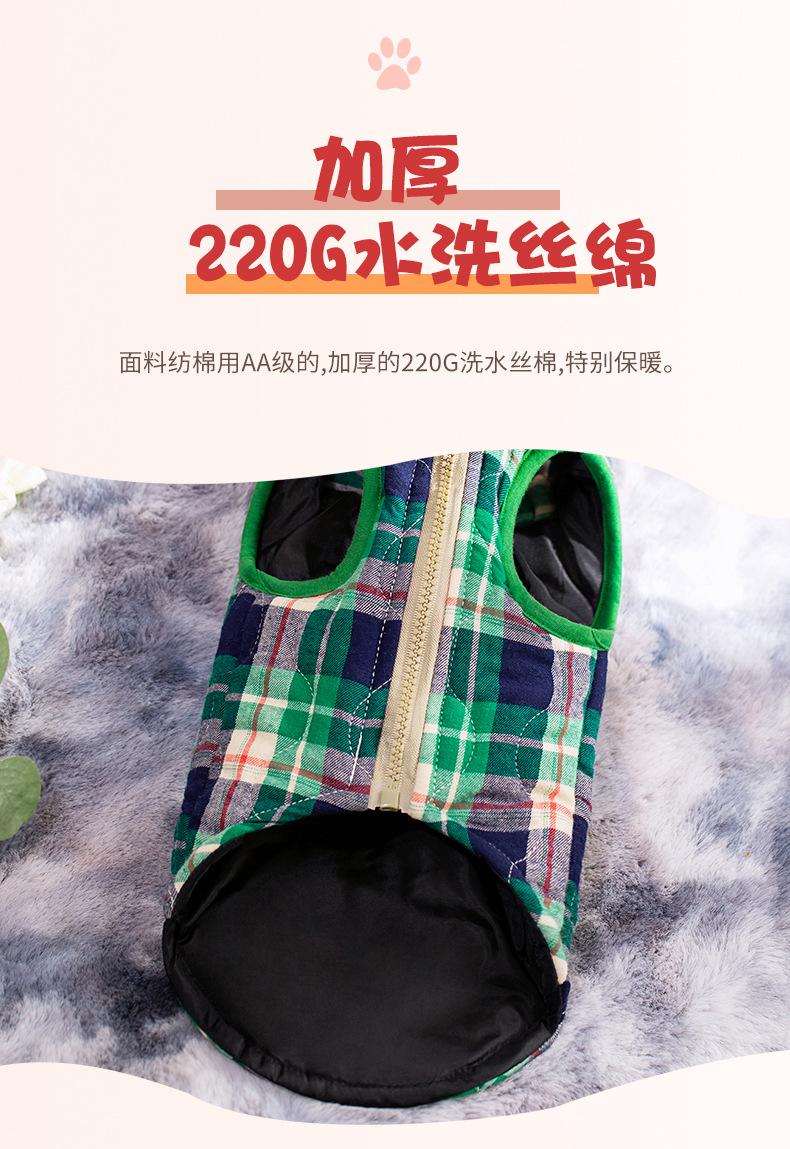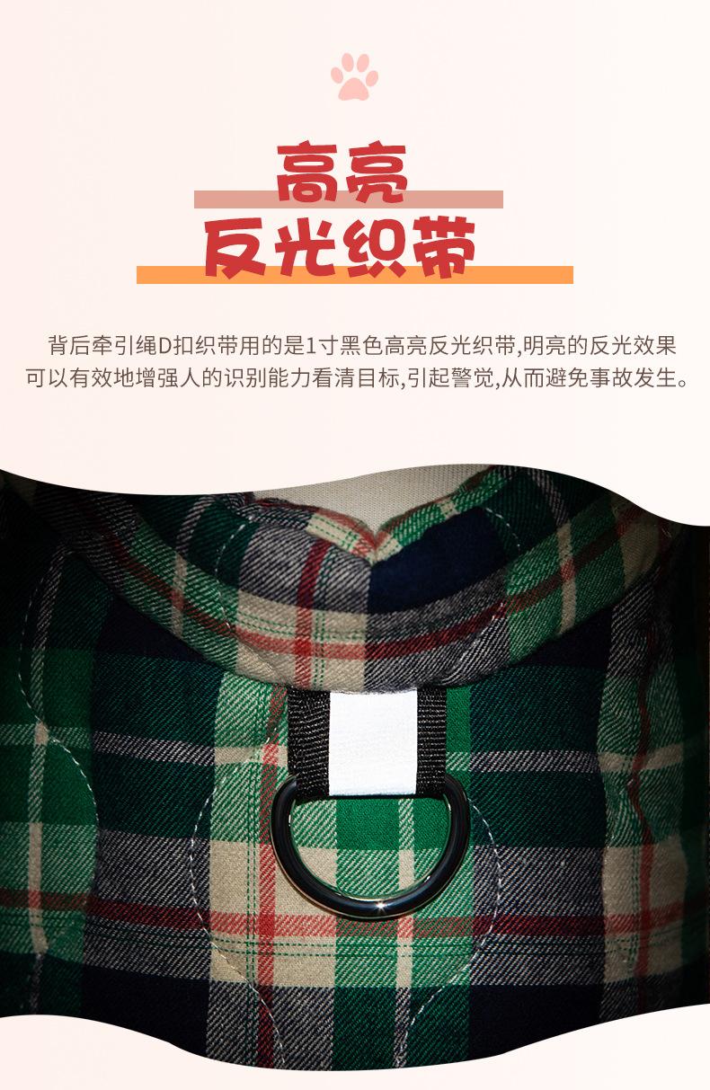 Abrigo acolchado de algodón con calabaza a cuadros escoceses verdes, chaqueta con cremallera abierta en el vientre, chaqueta para mascotas de otoño e invierno, abrigo acolchado de algodón