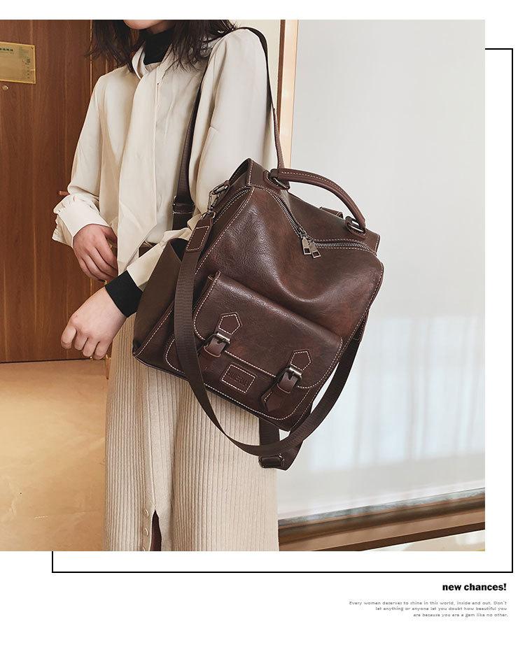 Mochila Vintage Estilo Universitario para Mujer 2020 Nueva Llegada Combinable a la Moda Gran Capacidad Mochila de Viaje pu Mochila Escolar para Estudiante Universitario