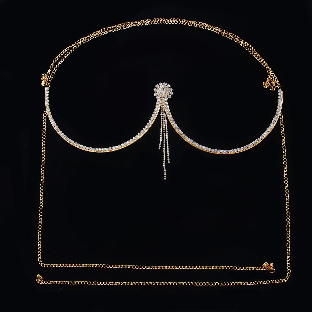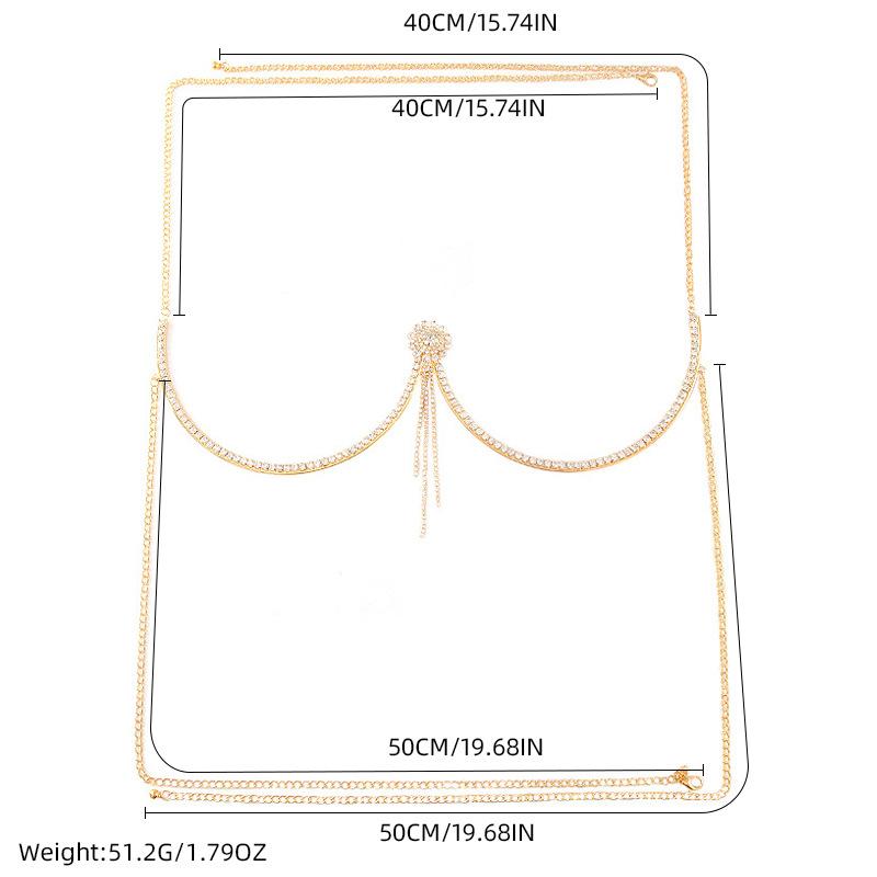 Joyería Transfronteriza Temperamento Europeo y Americano Moda Diamante Cristal Cadena Corporal Soporte Accesorios Cadena de Pecho con Borlas Sexy para Mujer