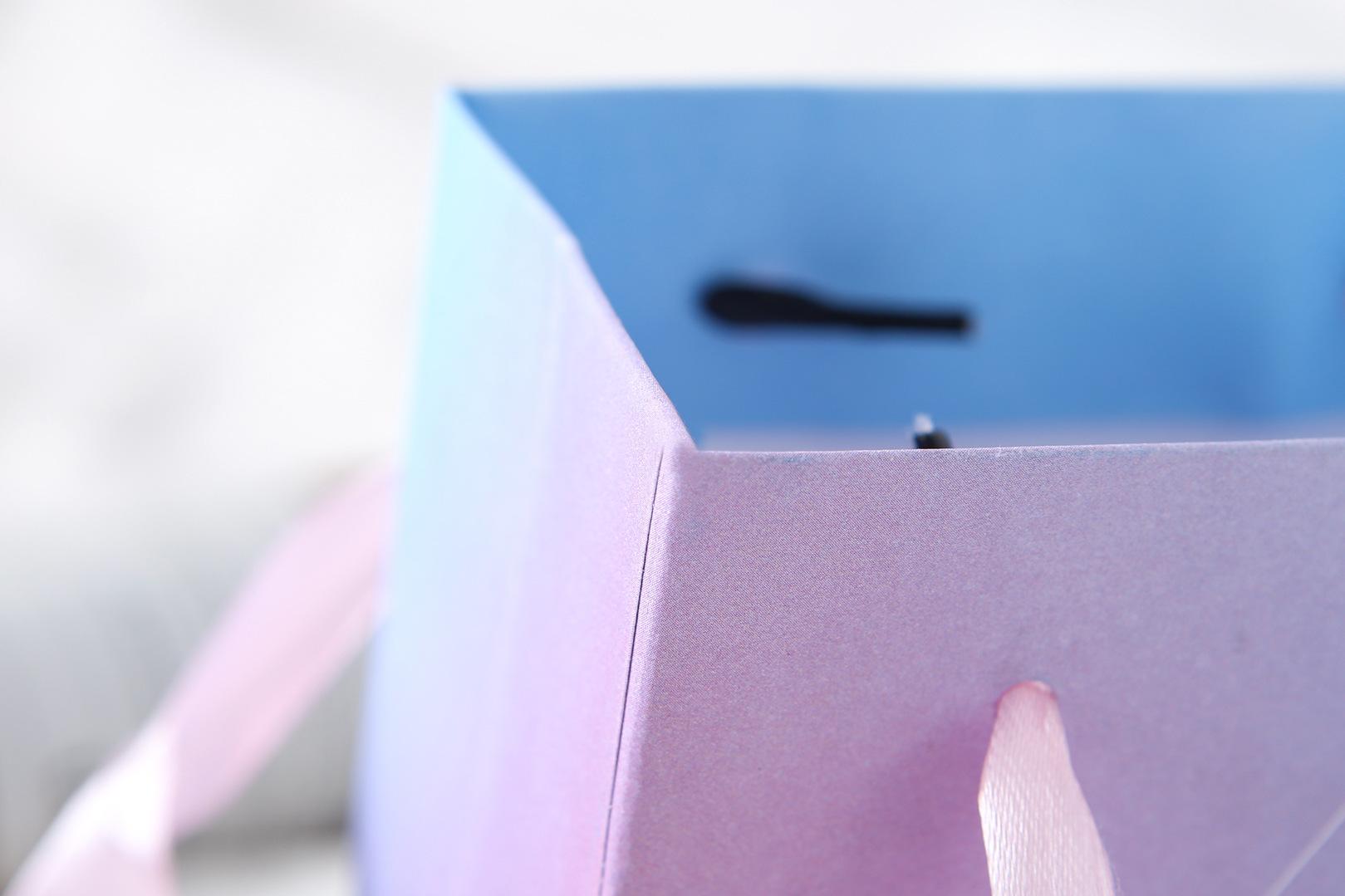 Pink blue paper box 5*5*3*gradient, Pink blue paper box 7*9*3*gradient, Pink and blue paper bag 11*12*6*gradient