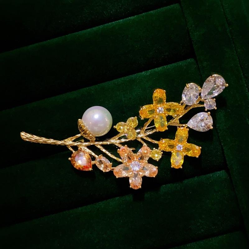 Broche Francés Retro Super Hermoso Brillante Cristal de Zircón Perla Broche Elegante Para Mujer Combinación con Todo Vestido Broche Ramillete Pin Hebilla