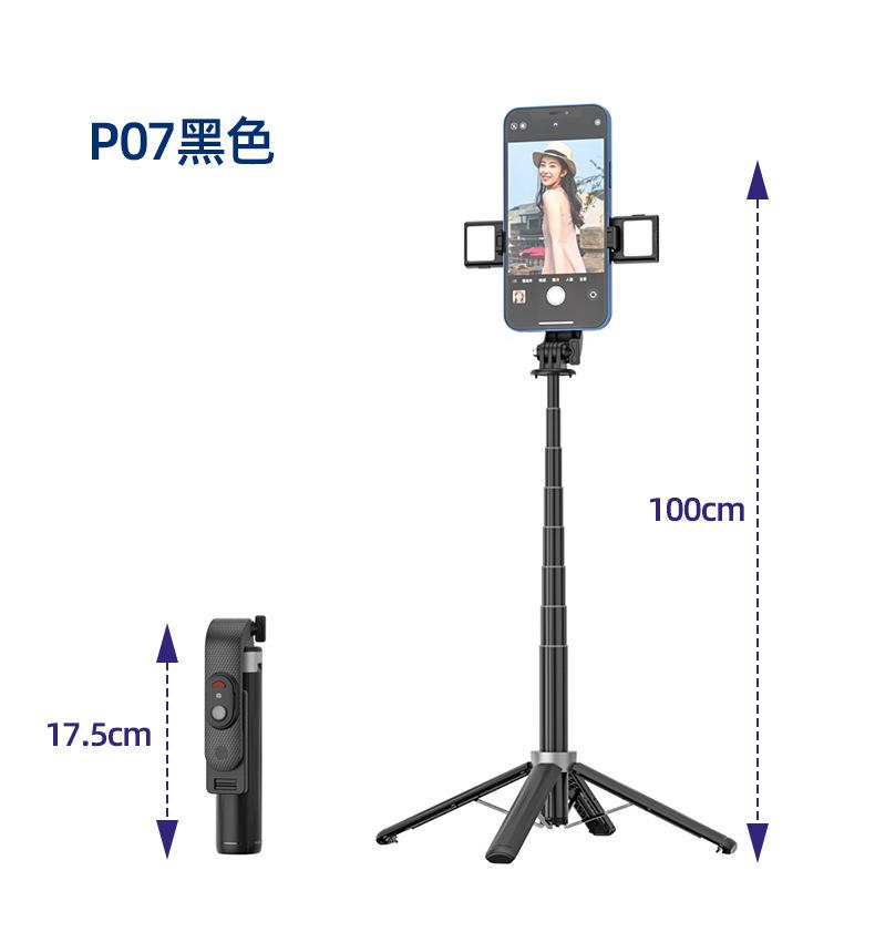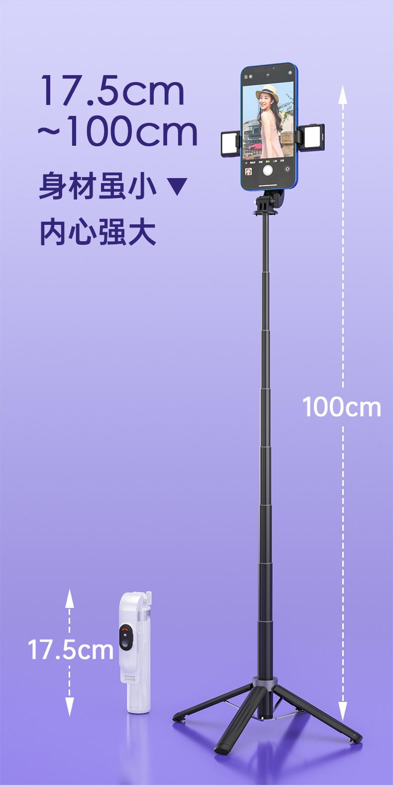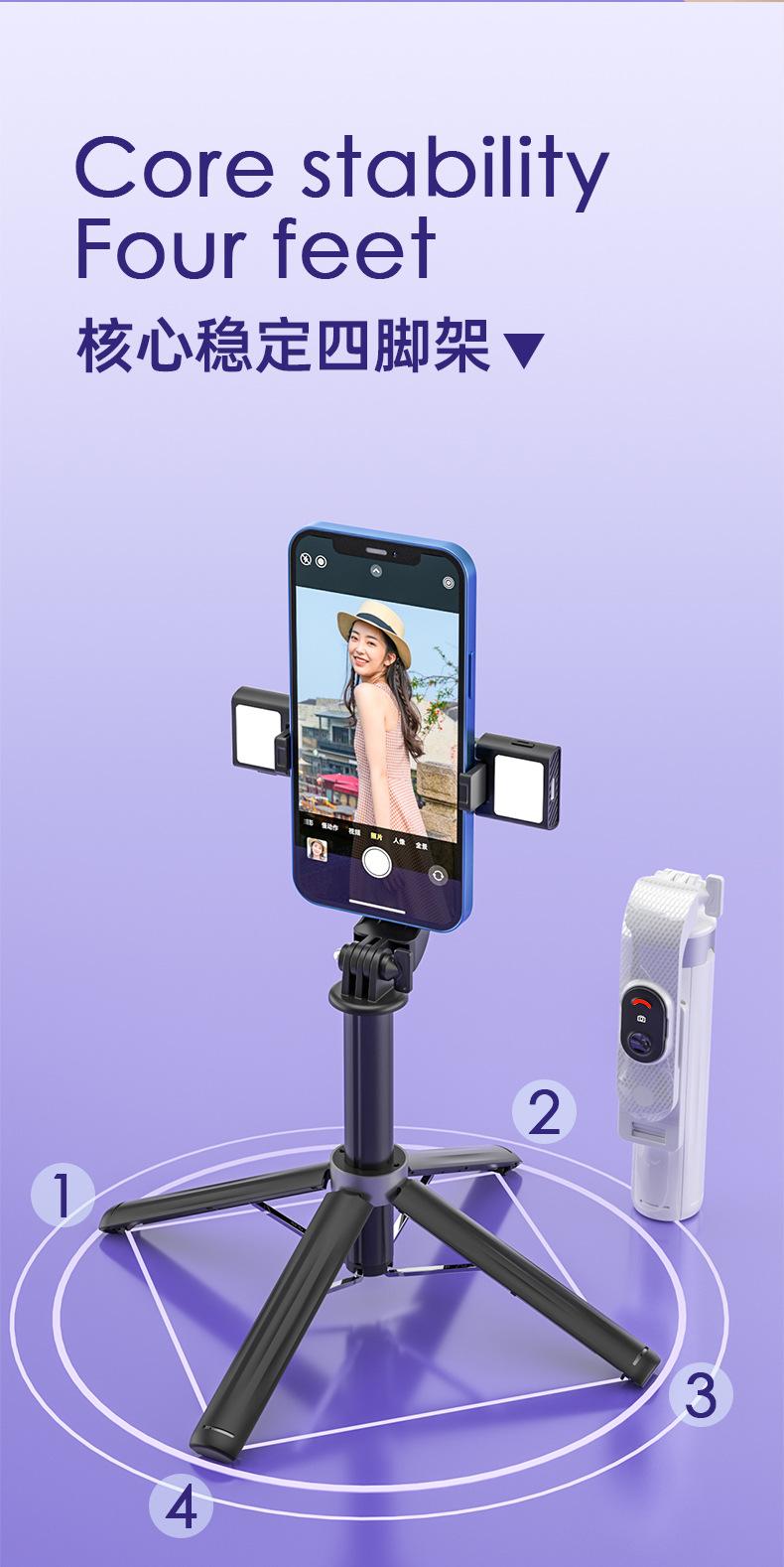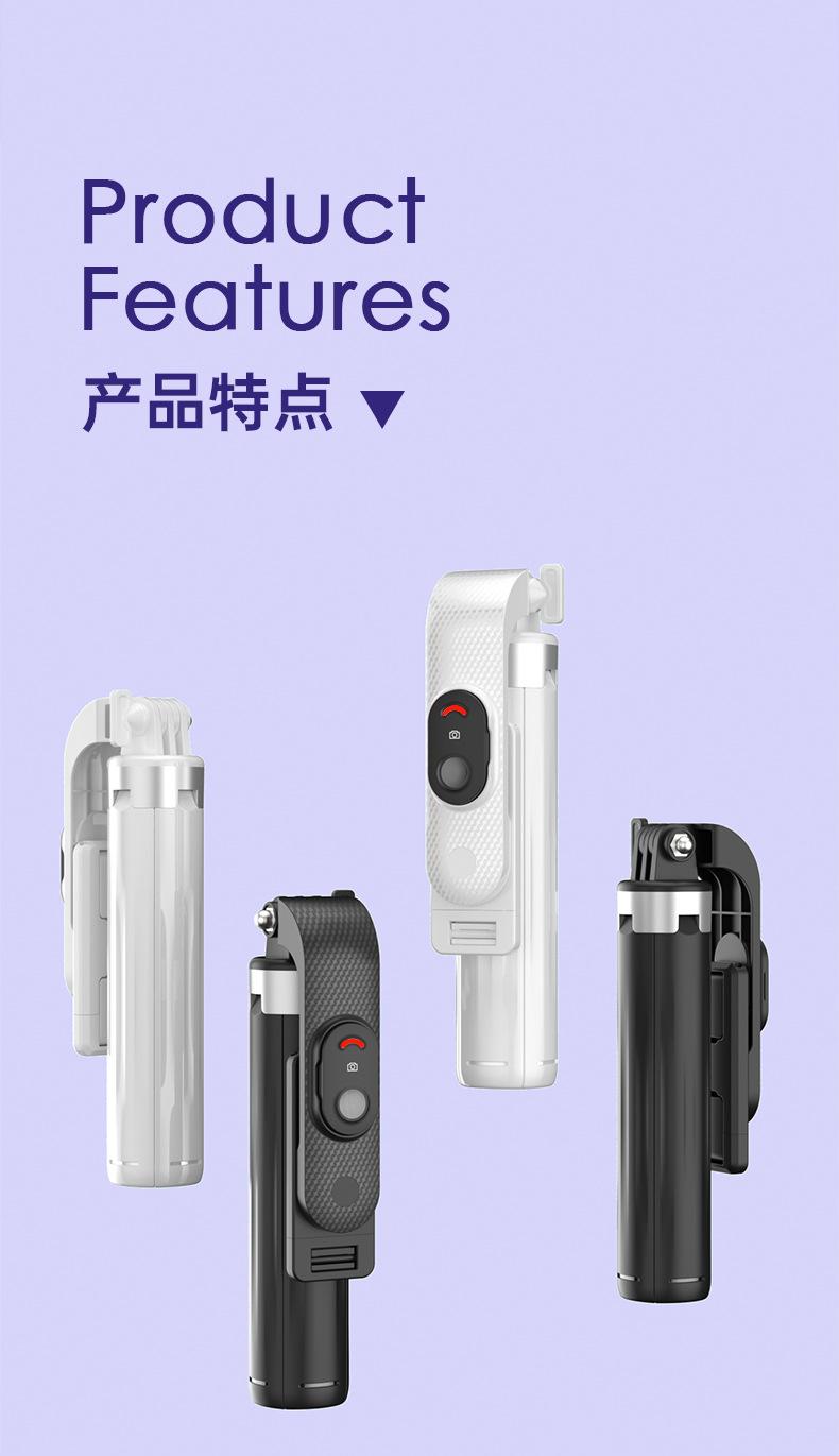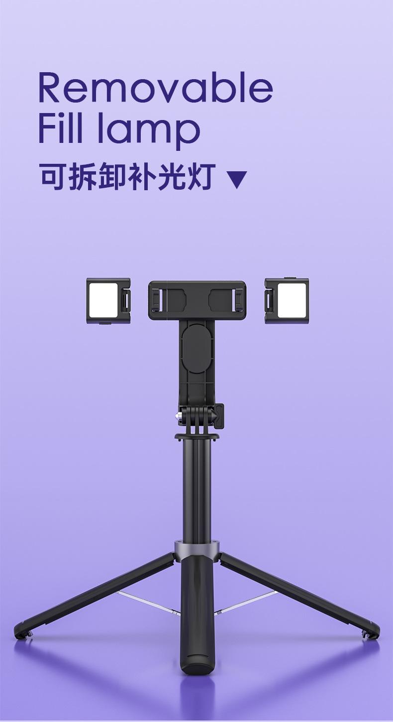 Fabricante mayorista de palo selfie con Bluetooth, palo selfie extendido de 1 metro con luz de relleno, fotografía horizontal y vertical, artefacto fotográfico universal