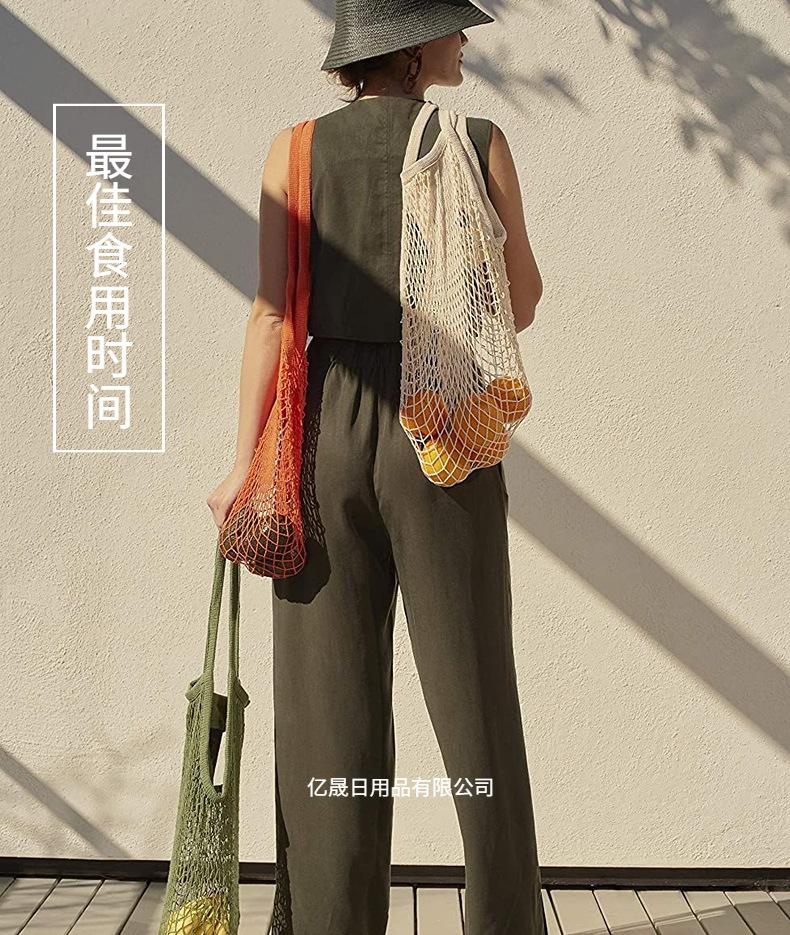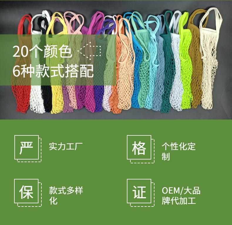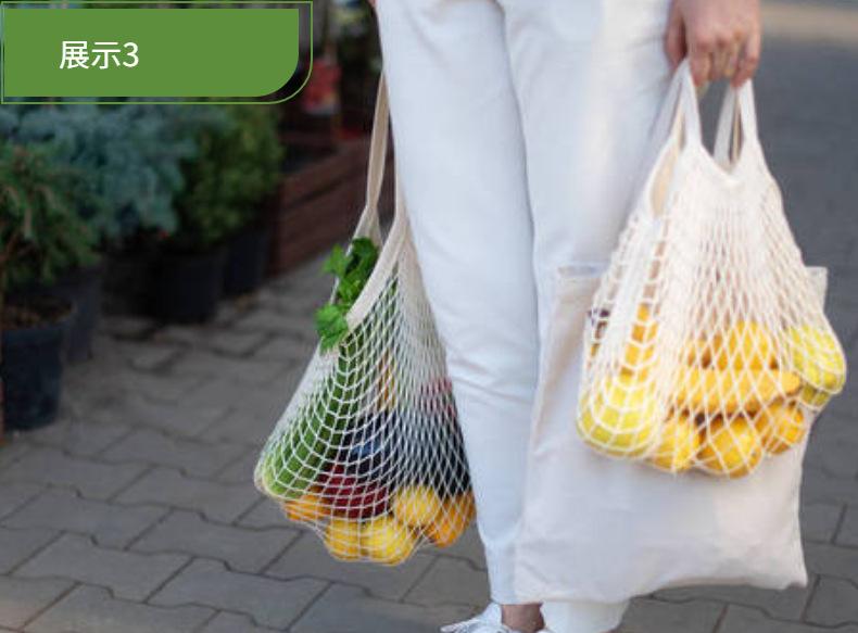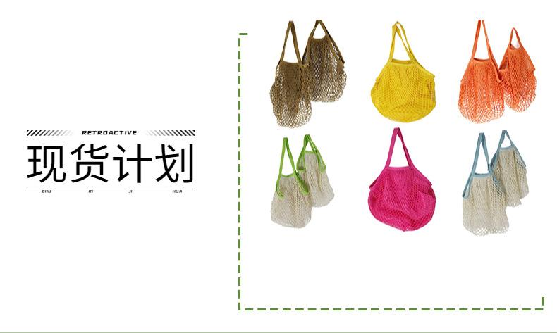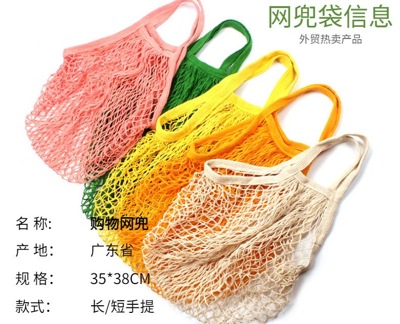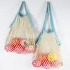 Bolsa plegable de almacenamiento en existencia, bolsa portátil de malla de algodón puro, bolsa de malla portátil, bolsa de malla para compras de frutas, bolsa de malla de algodón tejida