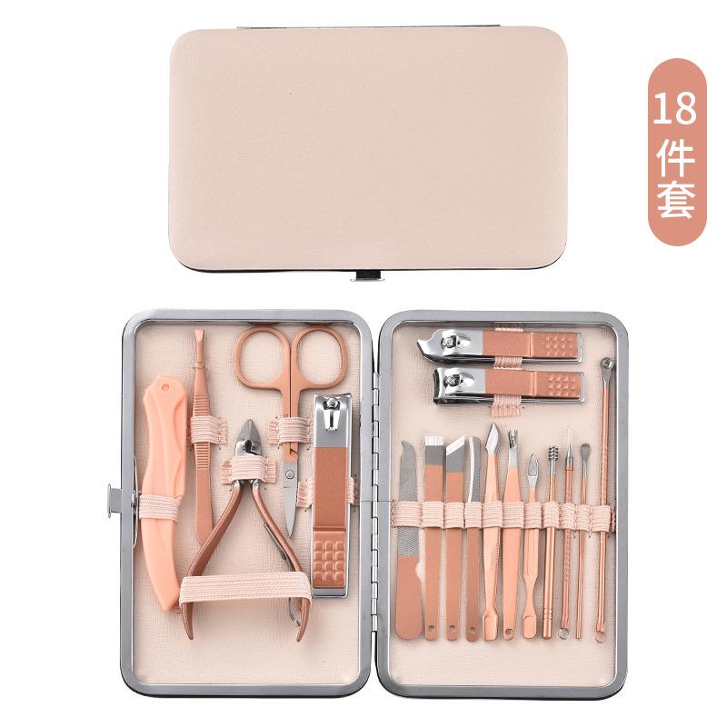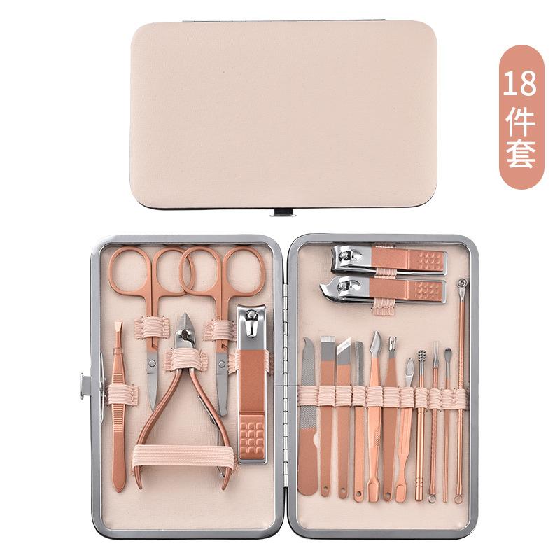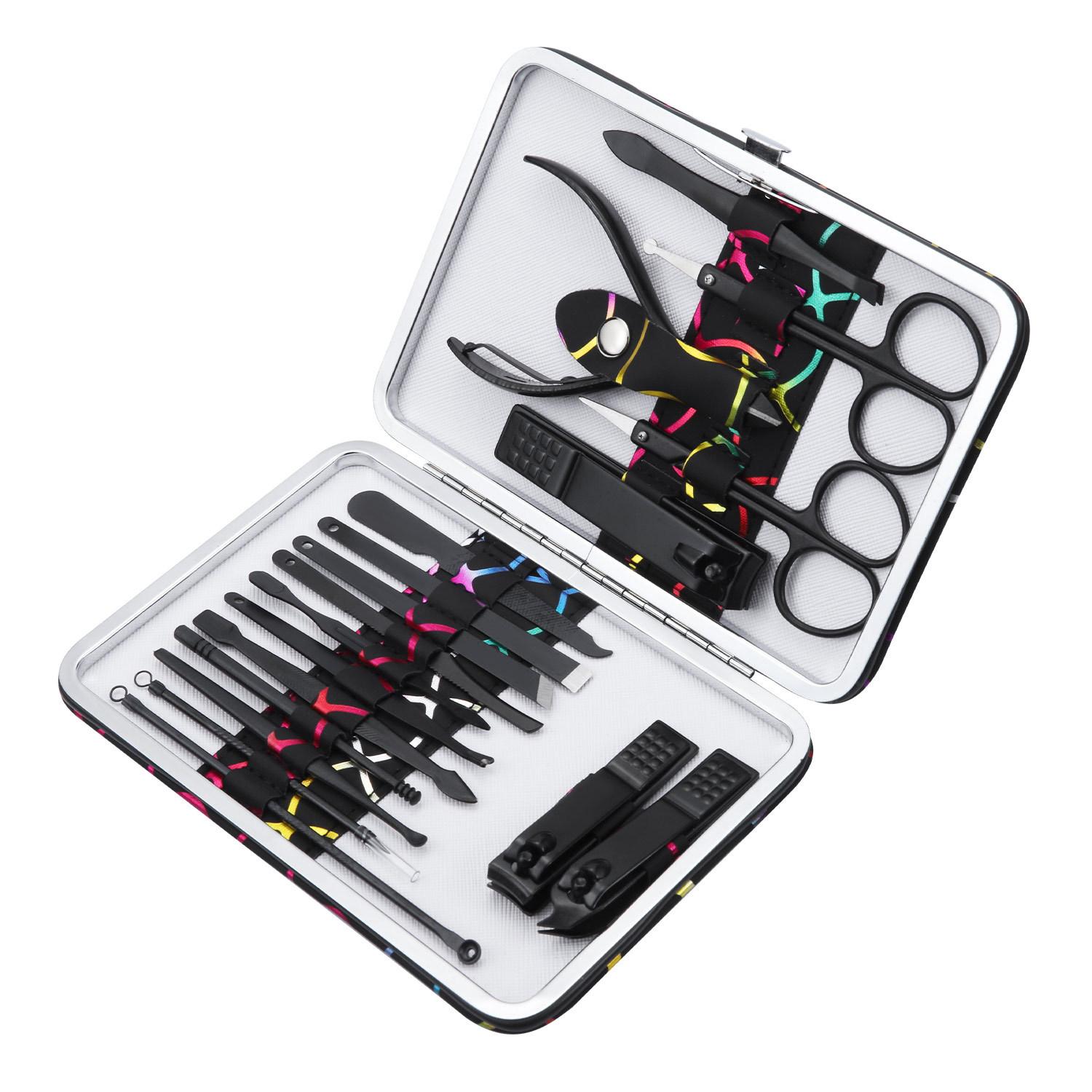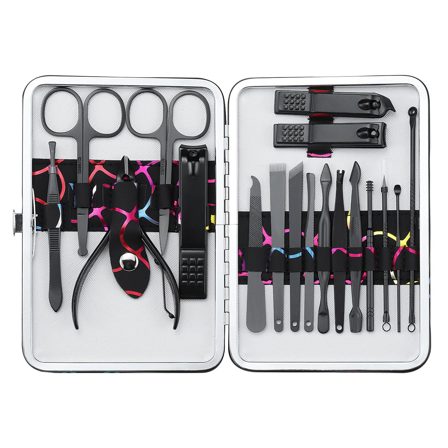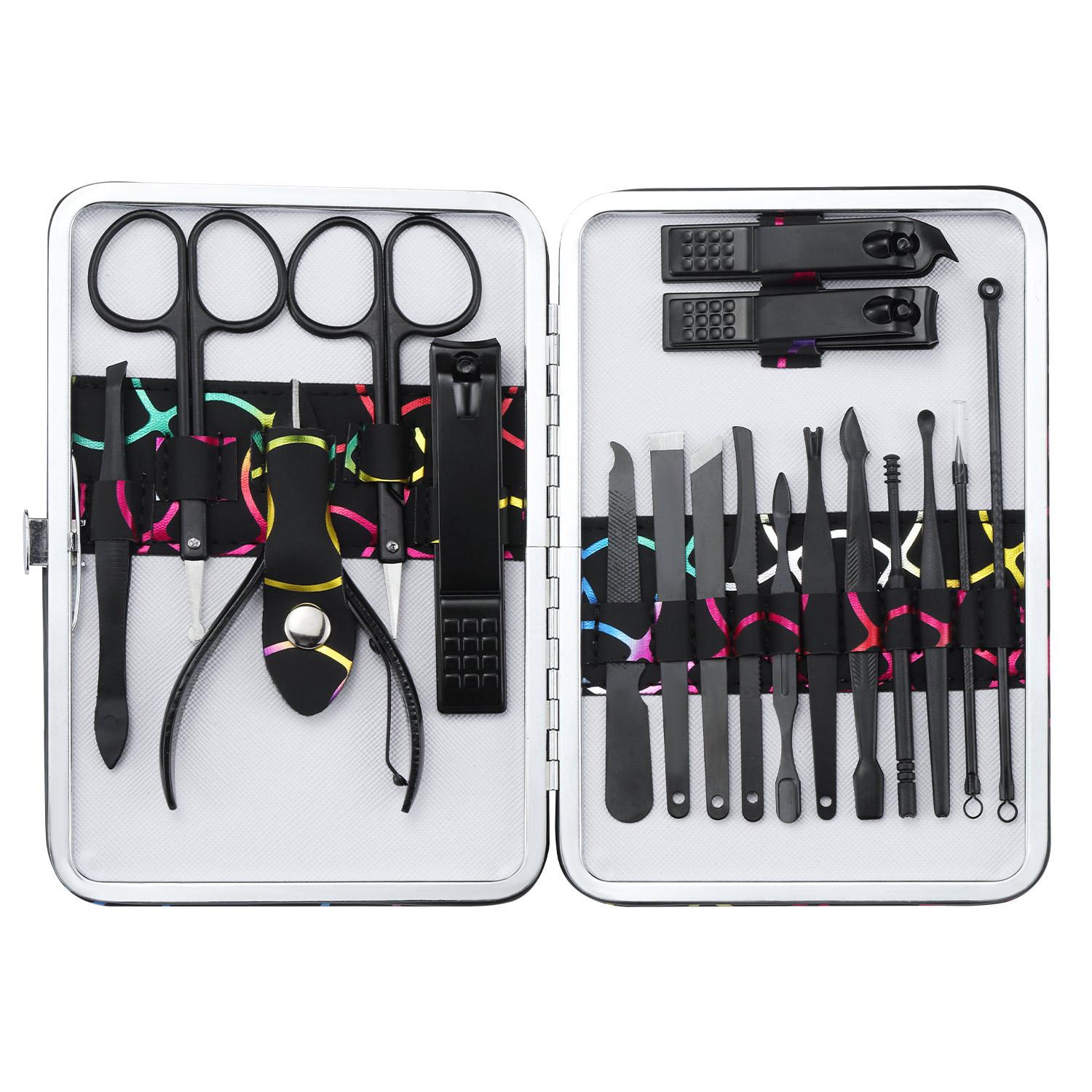 Juego de cortaúñas de acero inoxidable, tijeras para piel muerta, herramientas para uñas, cortaúñas oblicuos, cuidado de manicura, juego completo de 18 piezas