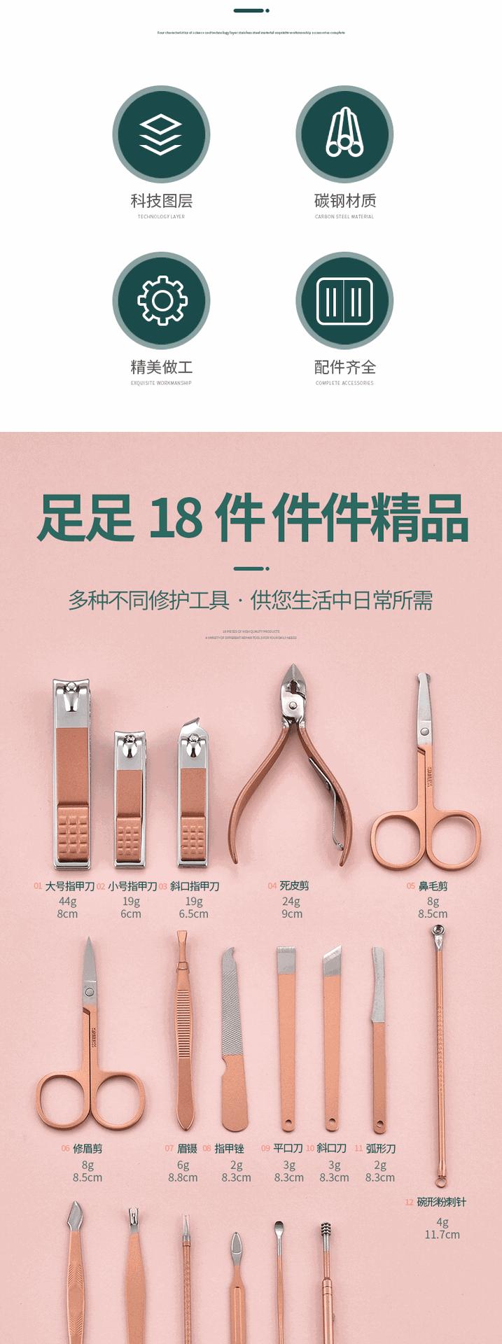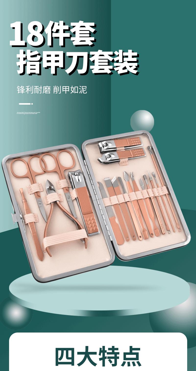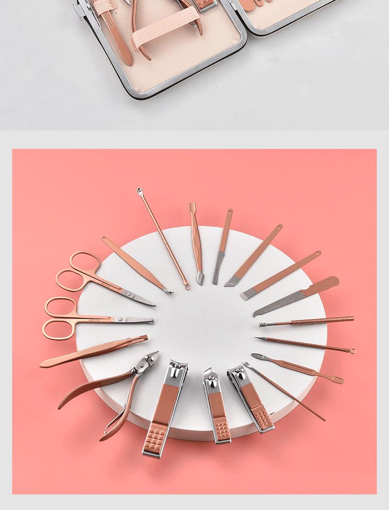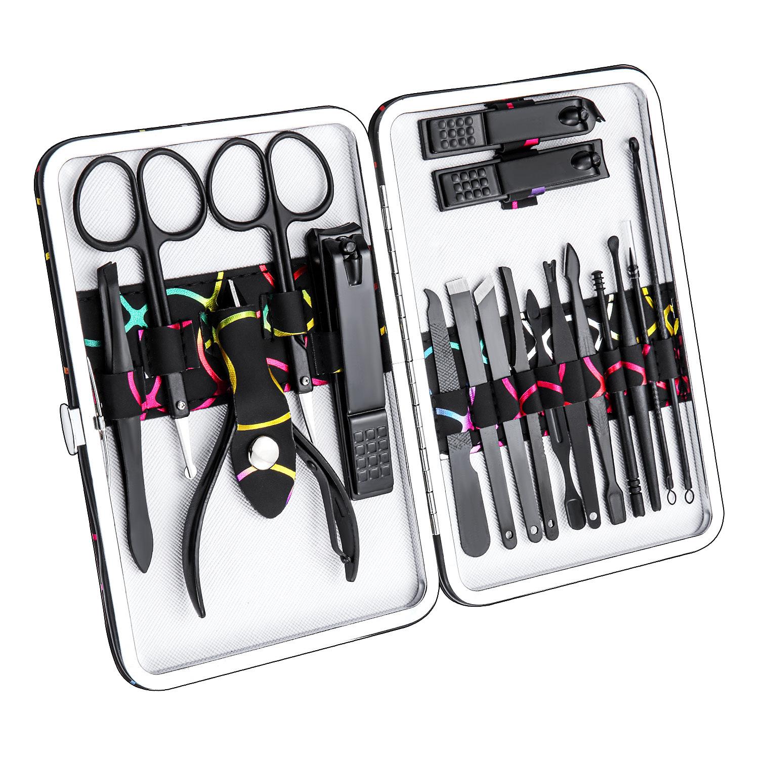 Juego de cortaúñas de acero inoxidable, tijeras para piel muerta, herramientas para uñas, cortaúñas oblicuos, cuidado de manicura, juego completo de 18 piezas