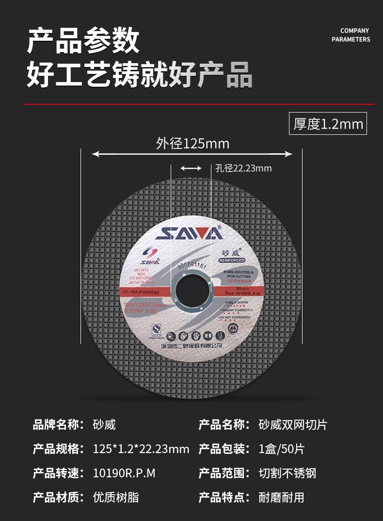Suministro directo de fábrica de arena Wei pieza de corte 125 * 1.2 malla doble acero inoxidable amoladora angular de metal pieza de muela de pulido al por mayor