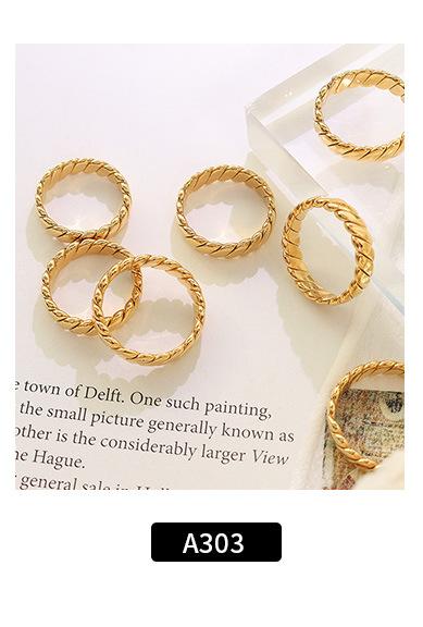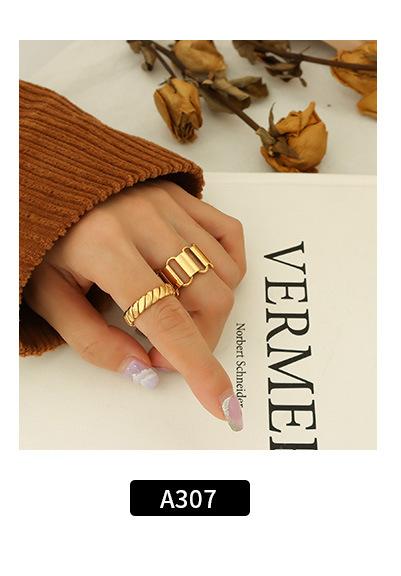 Anillo de acero inoxidable chapado en oro real de 18 quilates con apertura de onda en forma de U y diseño de nicho estilo europeo y americano A306