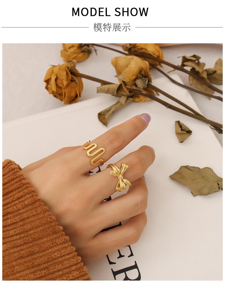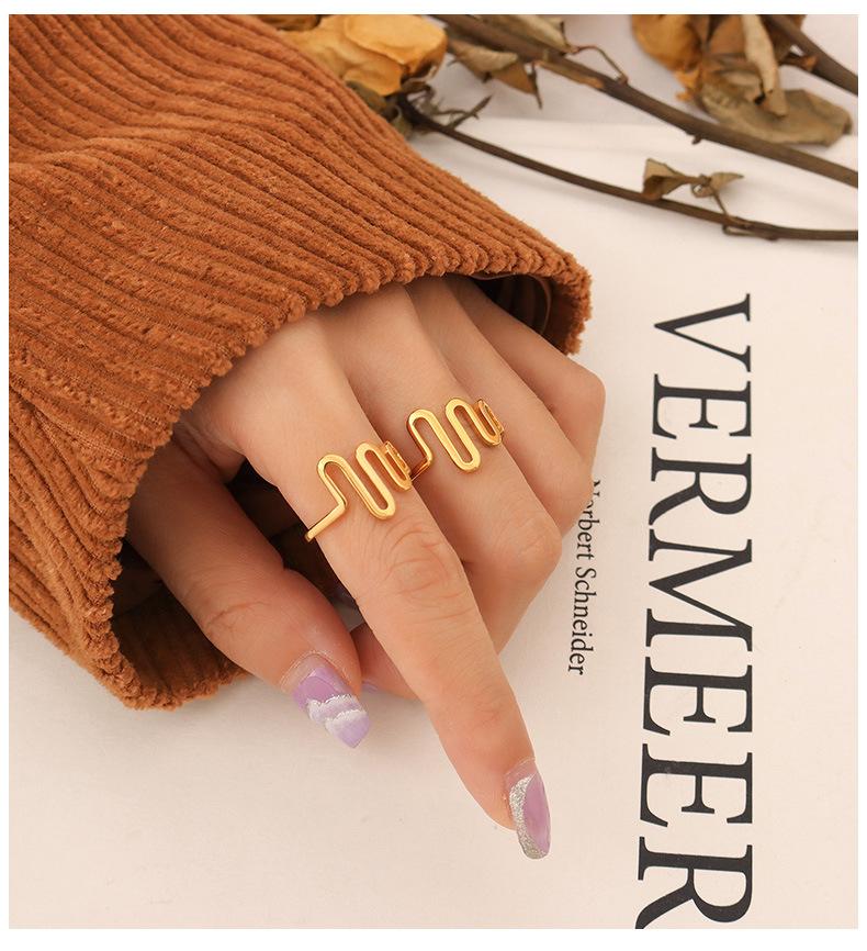 A306 Gold U-shaped Wave Opening Ring, A306 steel U-shaped wave opening ring
