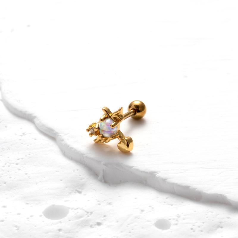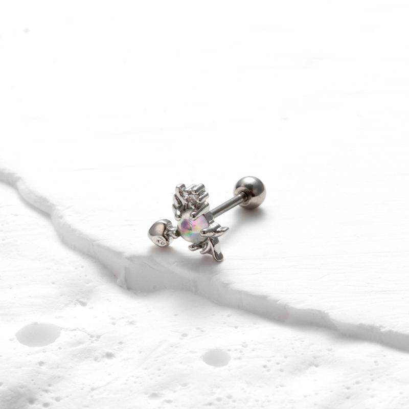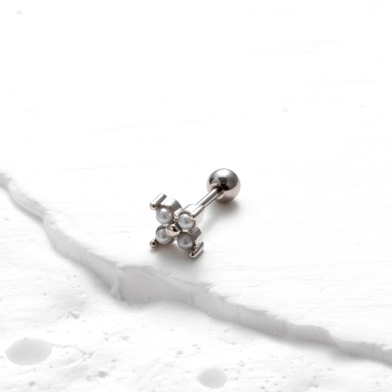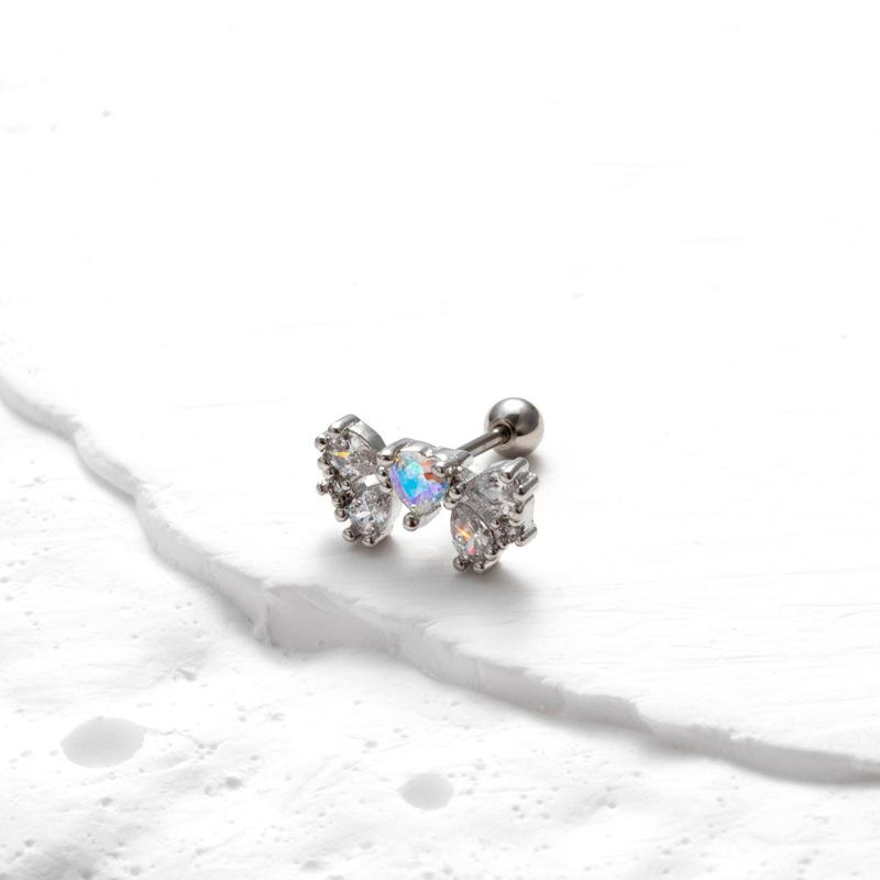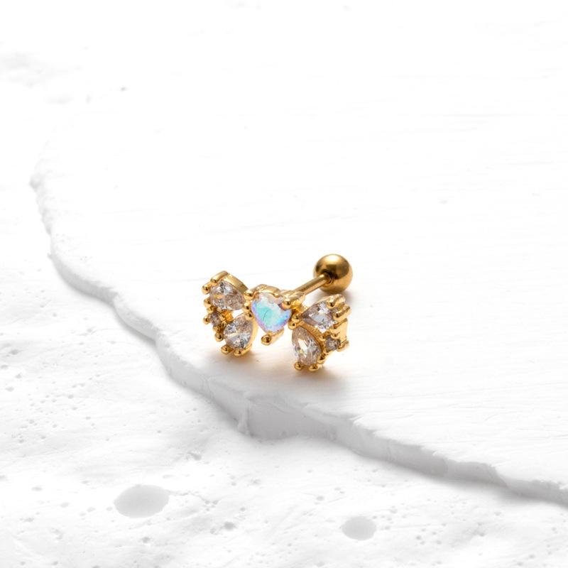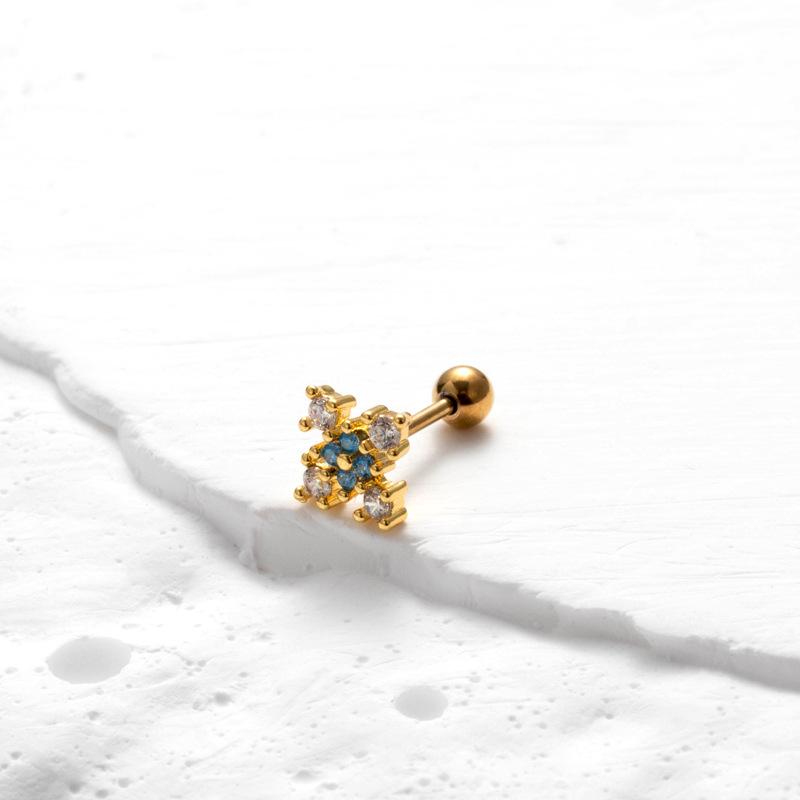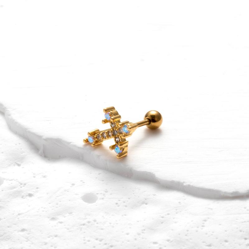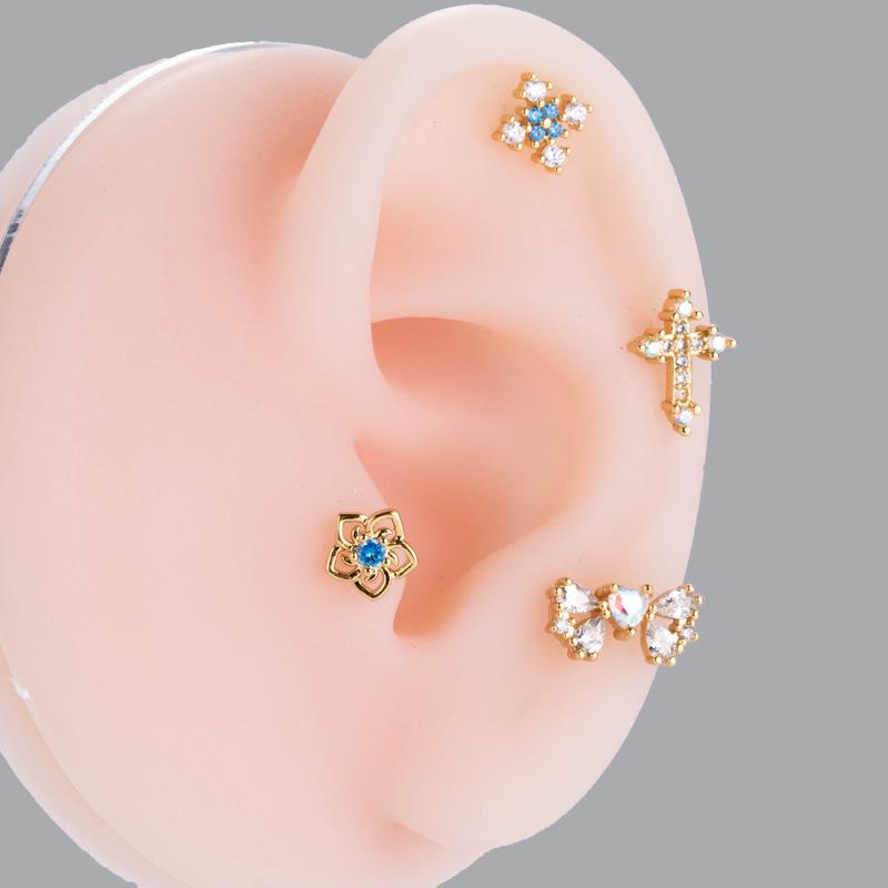 nombre del producto | Nuevos aretes de tornillo de doble cabeza de acero inoxidable, aretes de varilla delgada con cruz, mariposa, circonita, moda, versátiles, clavo para cartílago de oreja, individual |