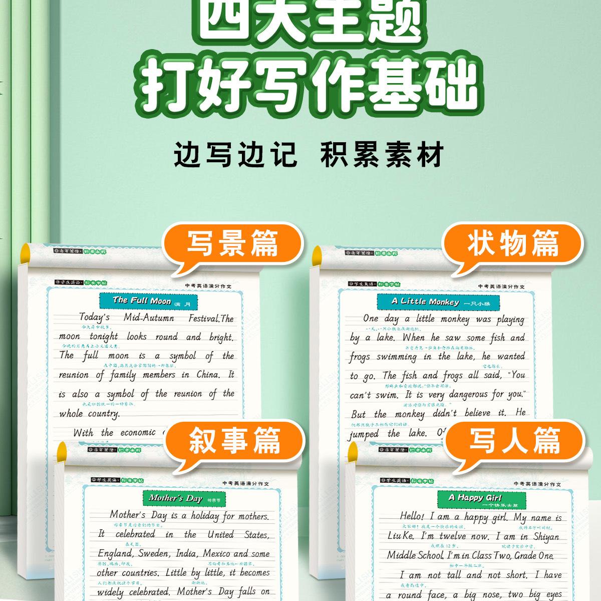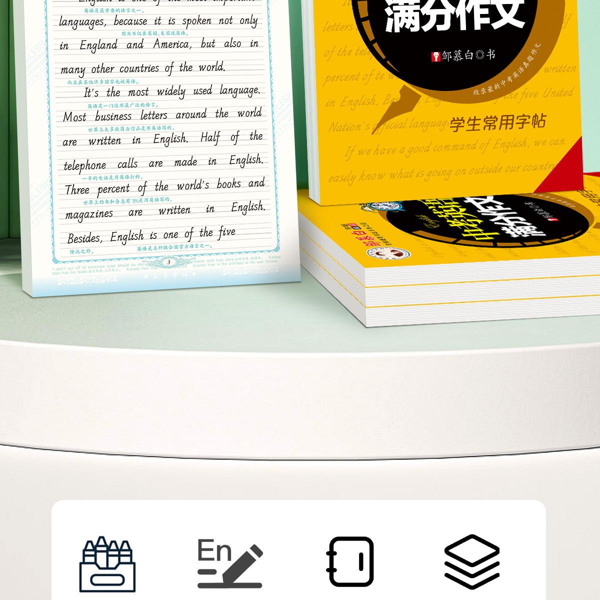 Cuaderno de caligrafía de Zou Mubai para ensayos perfectos en inglés en el examen de admisión a la preparatoria, Ensayos modelo de uso común para estudiantes de secundaria, Caligrafía con papel de calco, Un imprescindible para el examen de admisión a la preparatoria