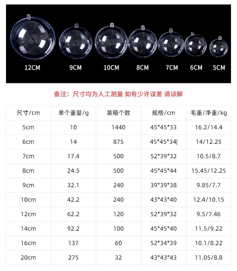 Bola Acrílica Hueca Transparente 3-20cm Bola Redonda de Plástico Bola Abre y Cierra Decoración Navideña Ps Bola Navideña Adorno Colgante