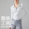 Estilo puro deseo solapa fina doble cremallera ropa de yoga bolsillo abrigo ajustado adelgazante manga larga top camisa base para mujer