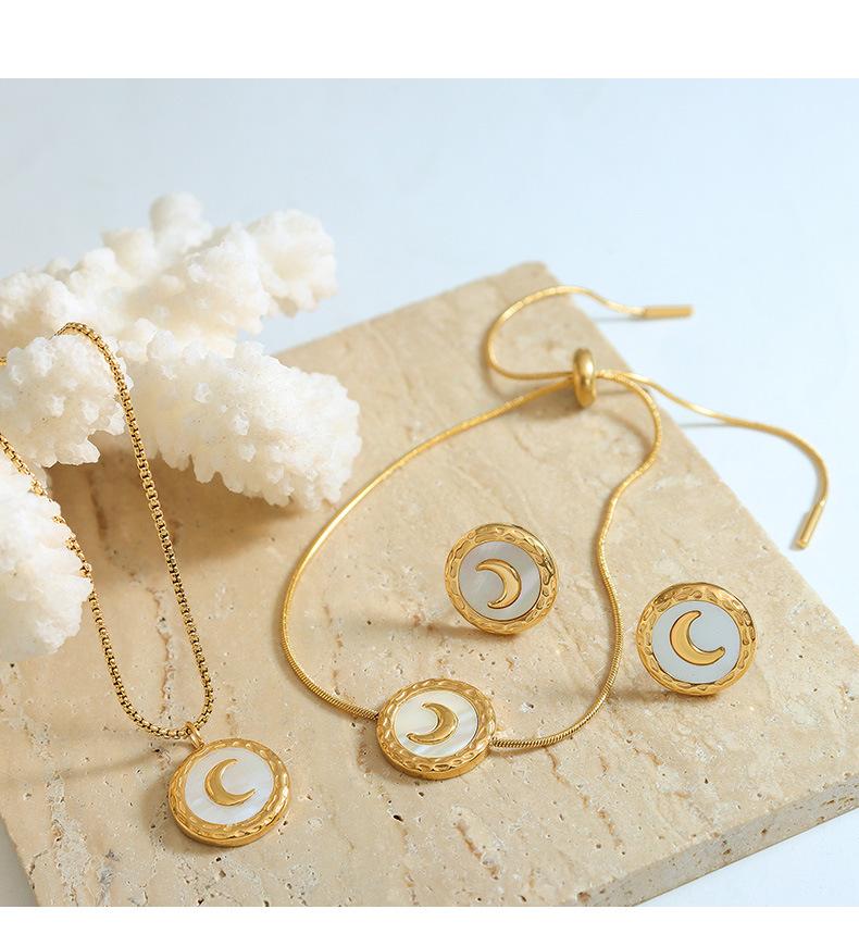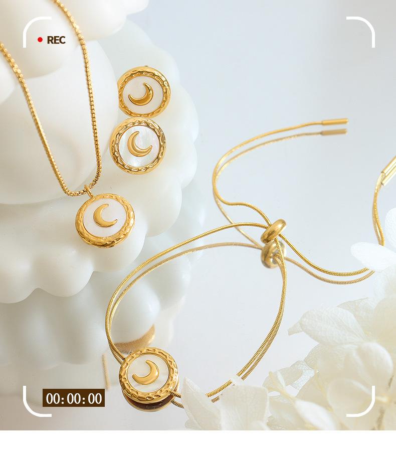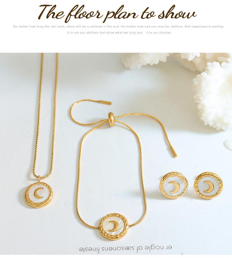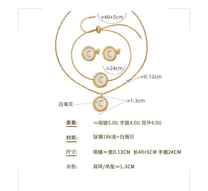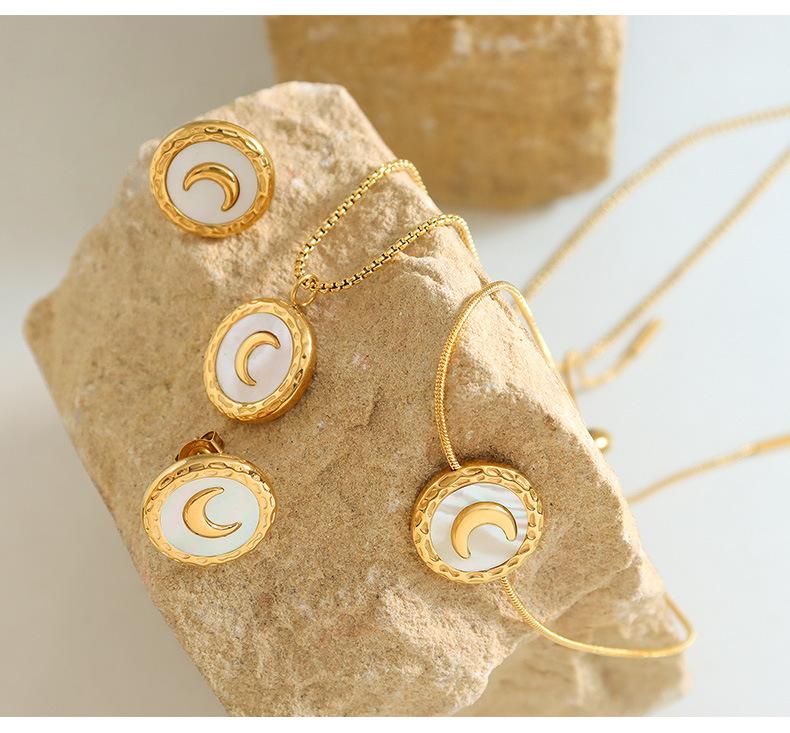 Conjunto de joyería de acero de titanio de moda, collar de luna de conchas blancas, pendientes de media luna, pulsera de joyería sin color para parejas de niñas.
