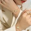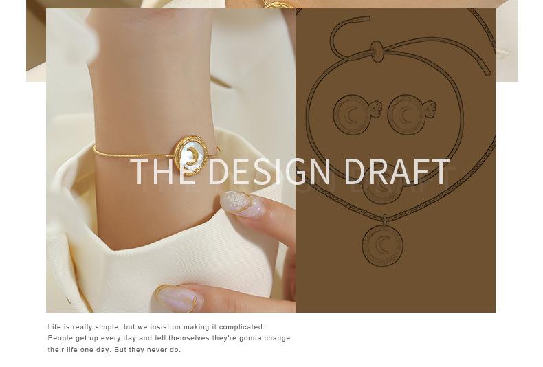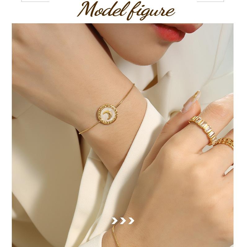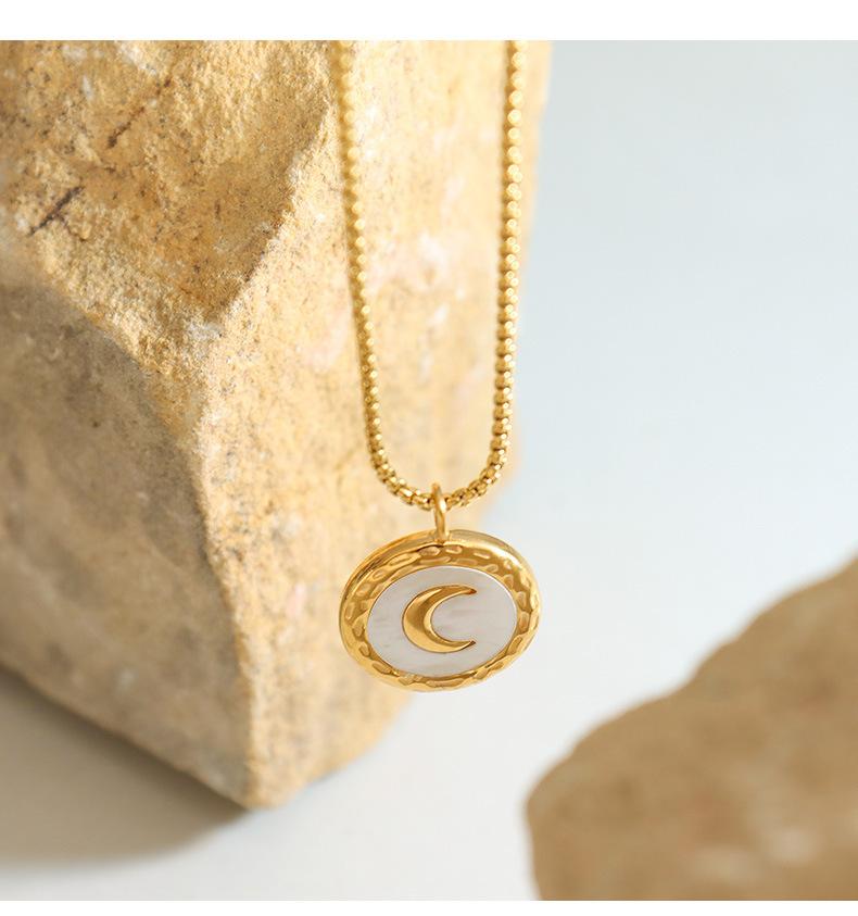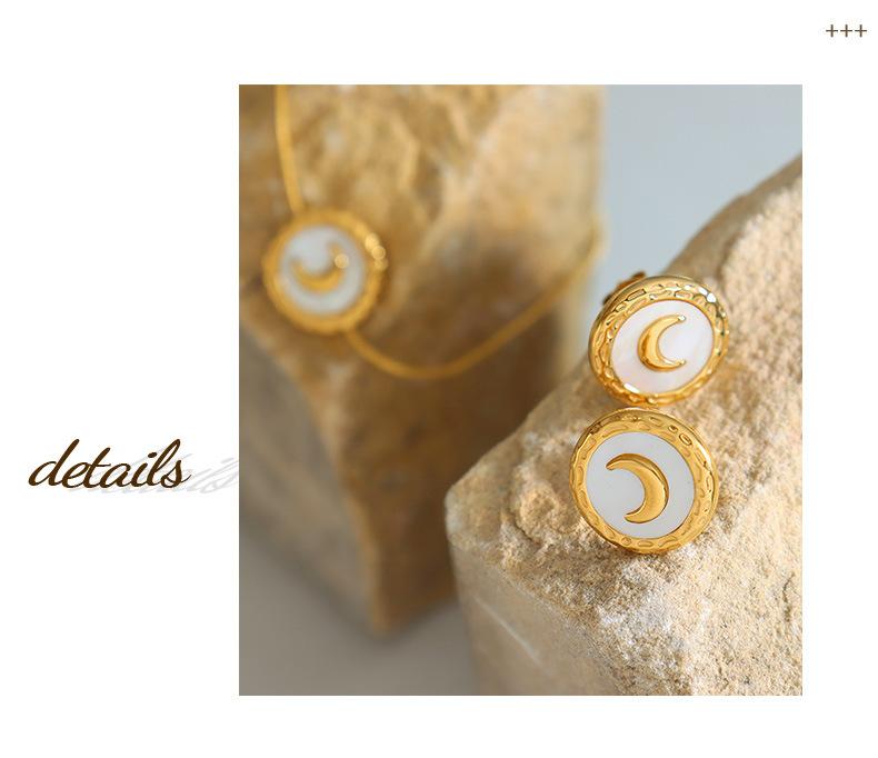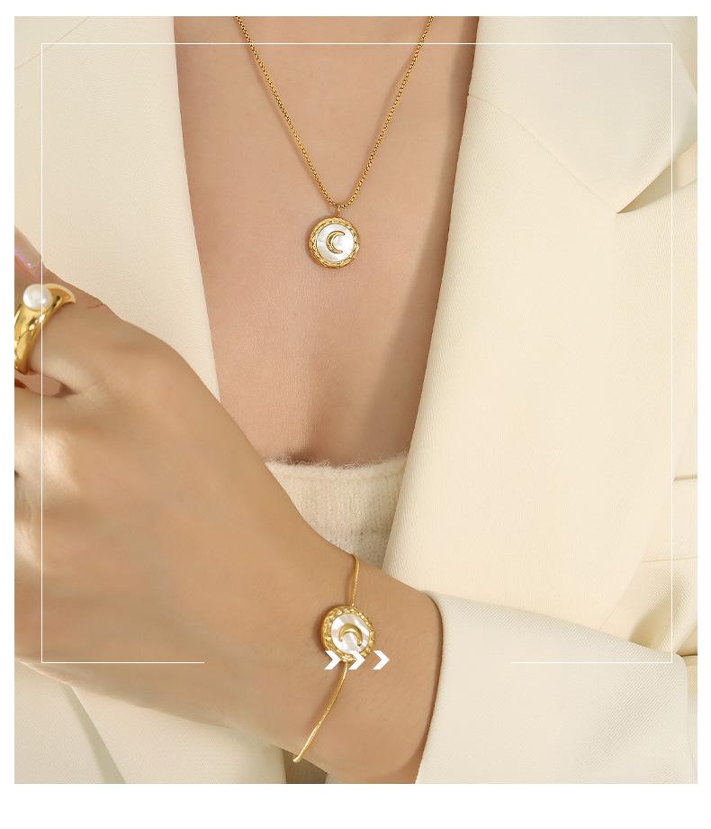 Conjunto de joyería de acero de titanio de moda, collar de luna de conchas blancas, pendientes de media luna, pulsera de joyería sin color para parejas de niñas.