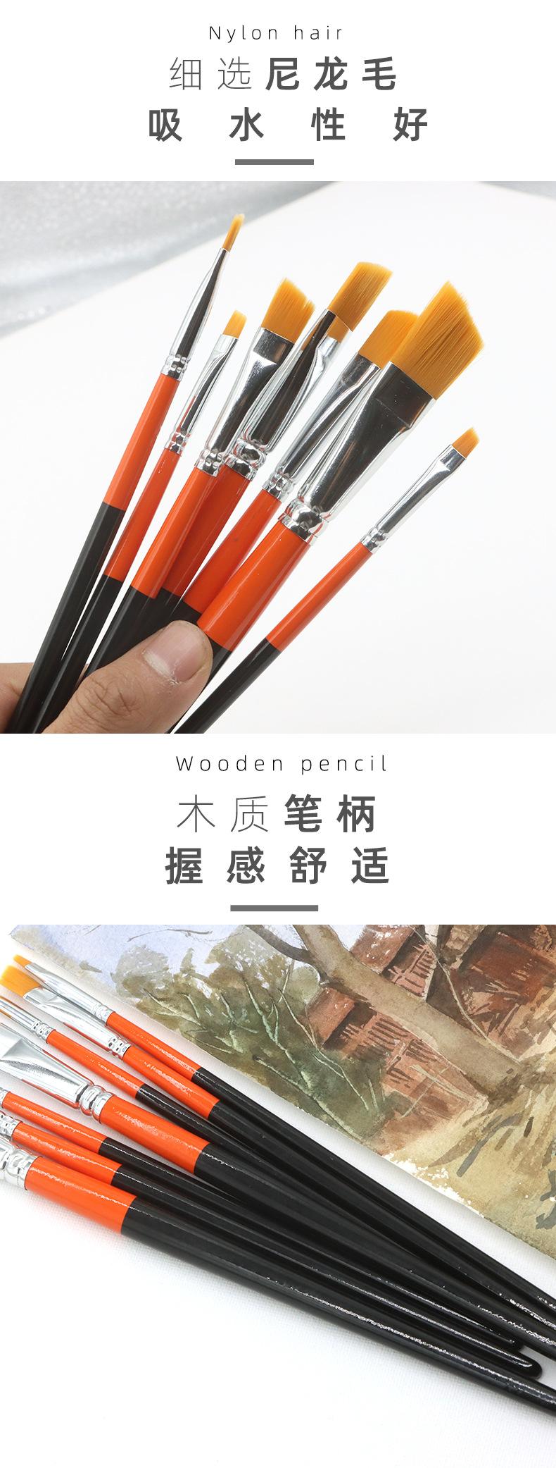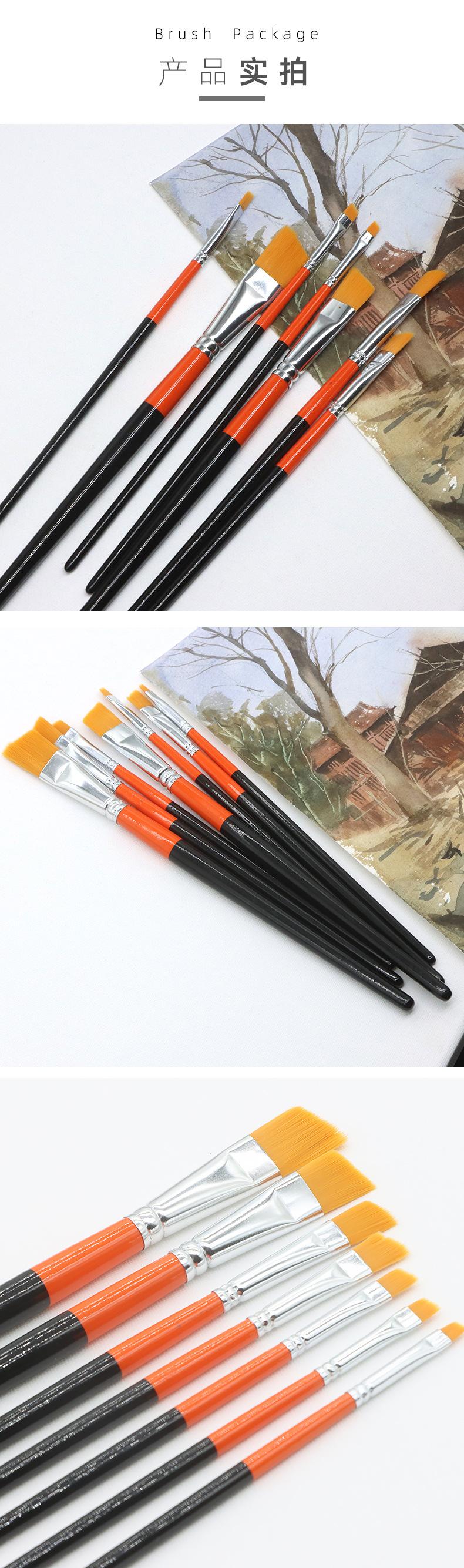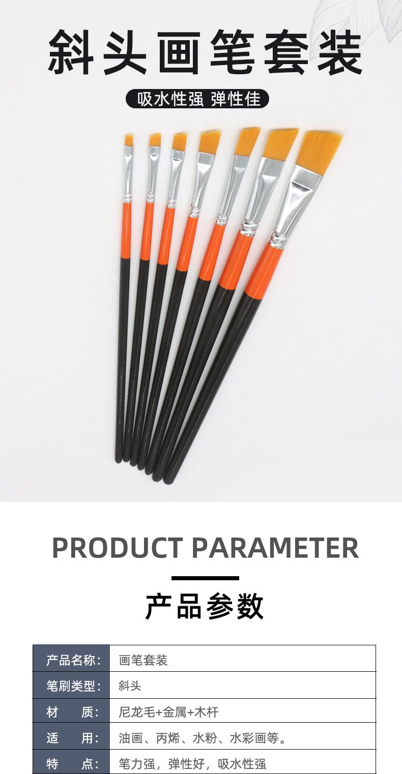 Traje de pinceles de lana de nailon para niños nuevo de fábrica Paquete de 7 pinceles de aceite de cabeza inclinada pincel acrílico tiza de agua venta al por mayor