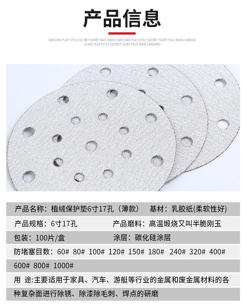Nombre del producto: Papel de lija flocado importado 6 pulgadas 17 agujerosLa arena fina tiene mejor rendimiento anti-obstrucción