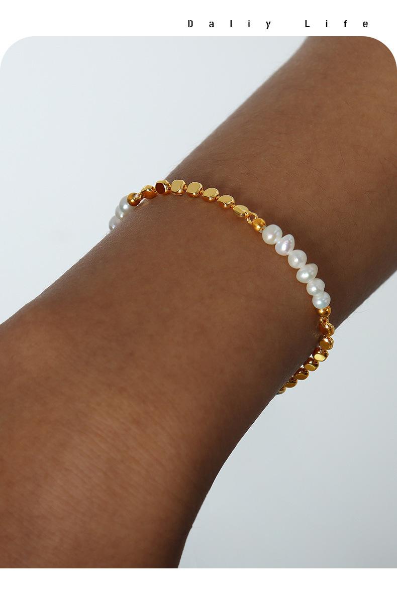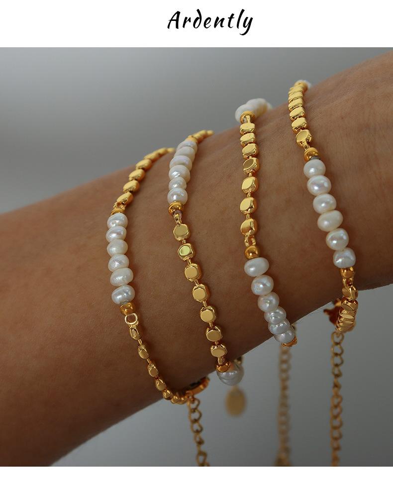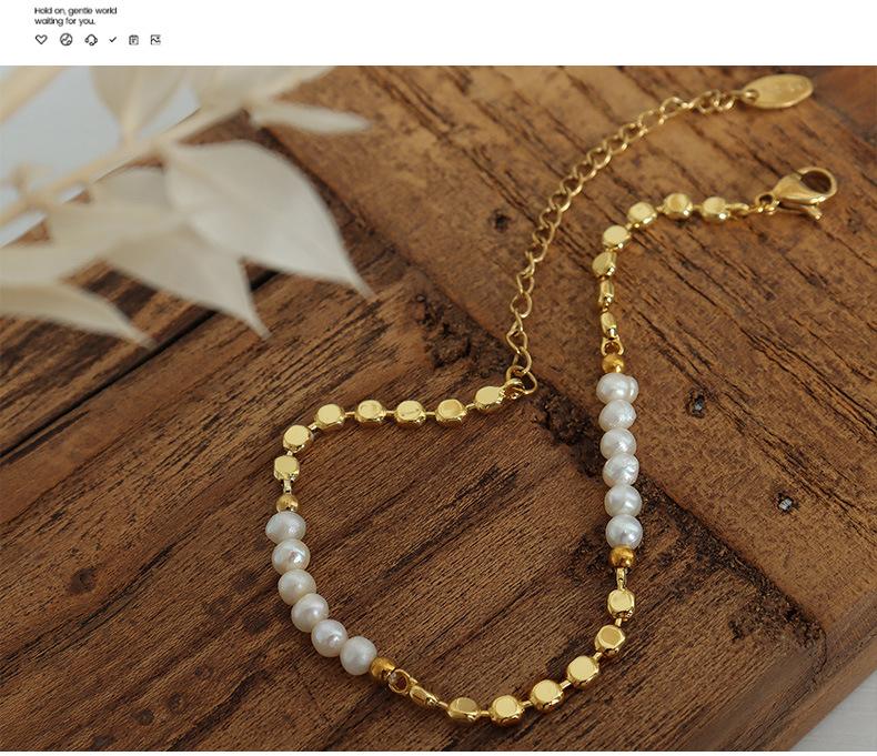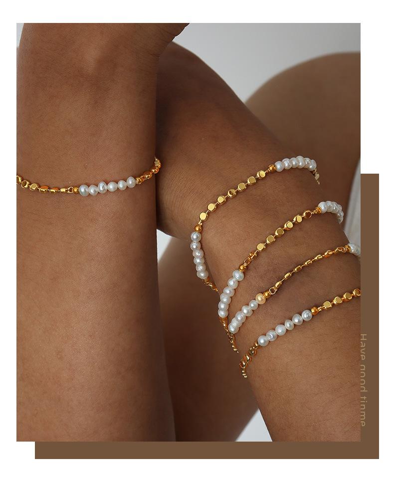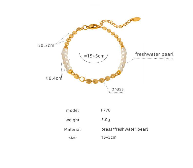 Joyería de moda simple de nicho europea y americana, temperamento, material de cobre brillante, pulsera de perlas de agua dulce, pulsera para mujer, venta al por mayor de fábrica