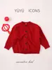 Suéter infantil de otoño e invierno 2023, ropa infantil para niños y niñas, cárdigan de punto rojo chino Mori de estilo occidental con cuello redondo a la moda