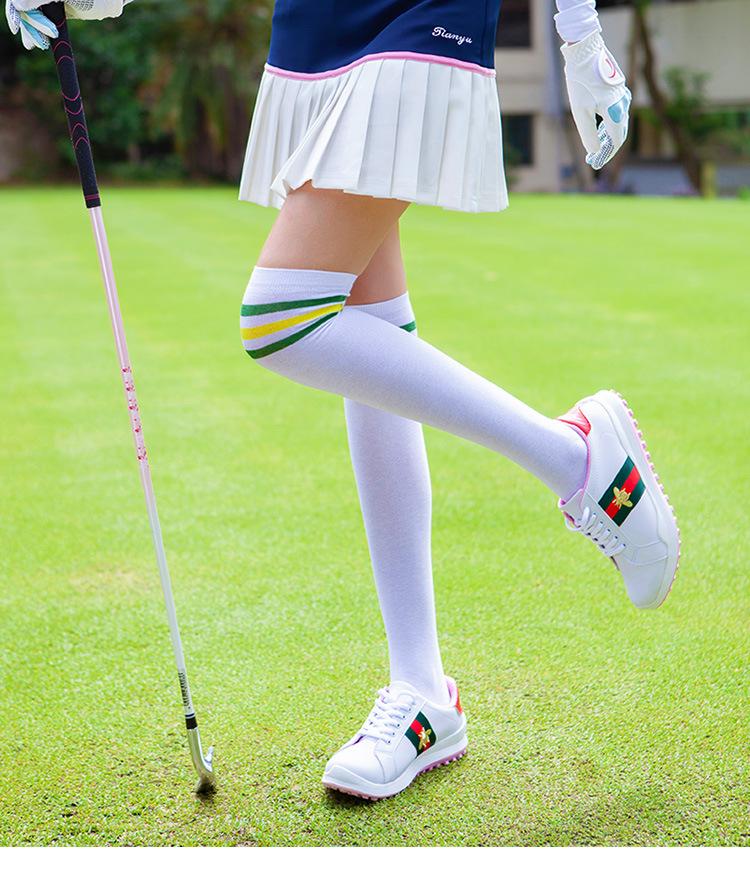 Calcetines de golf para mujer, medias hasta la rodilla, deportivos, informales, con tres rayas y falda corta.