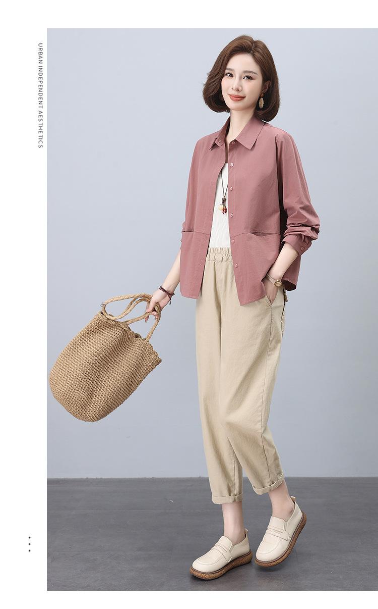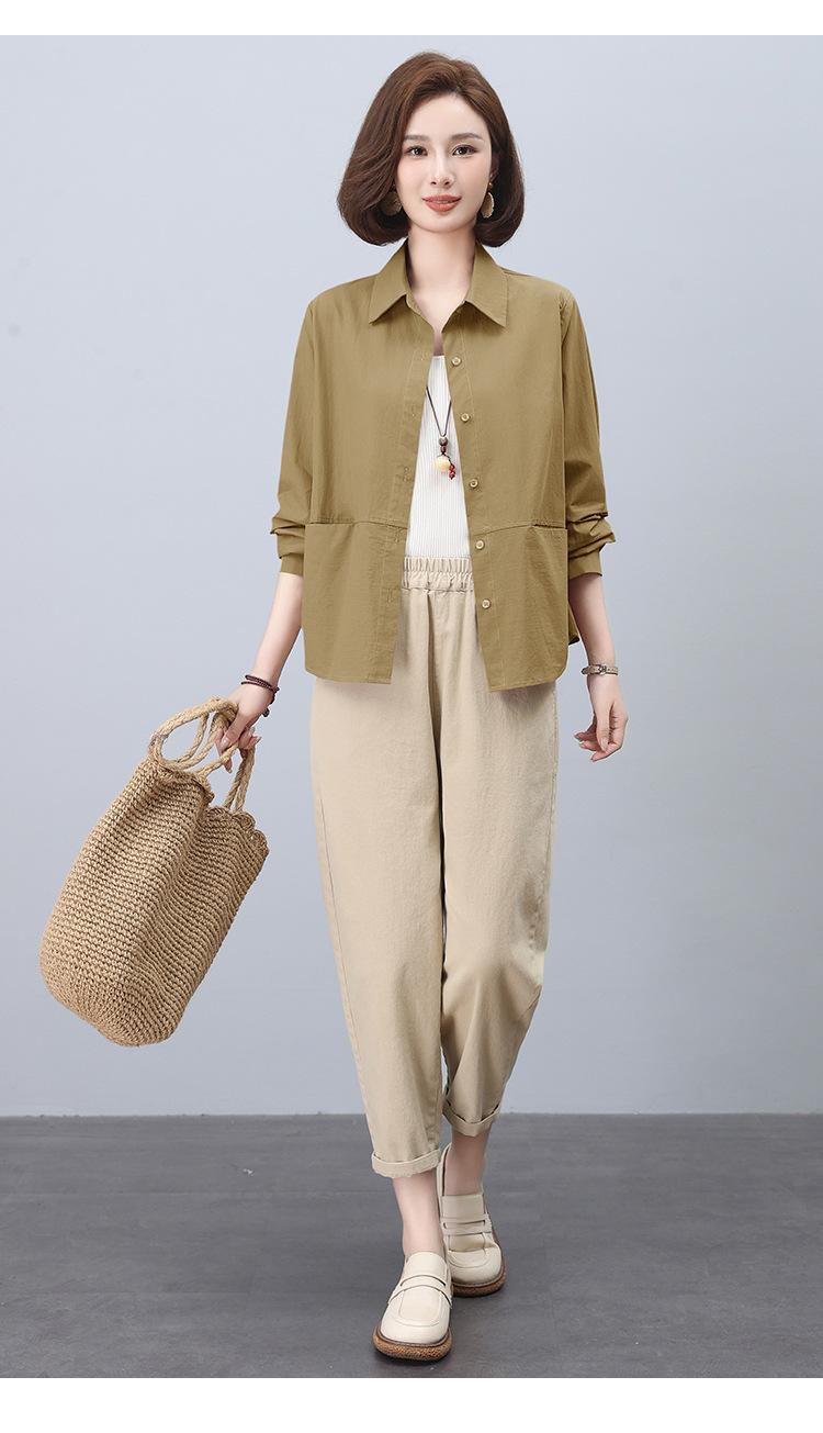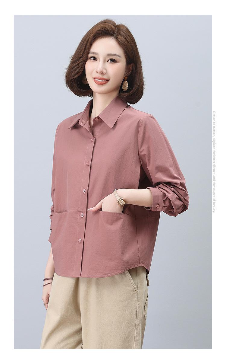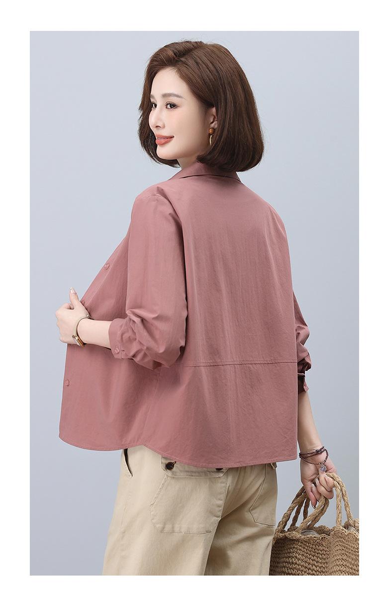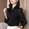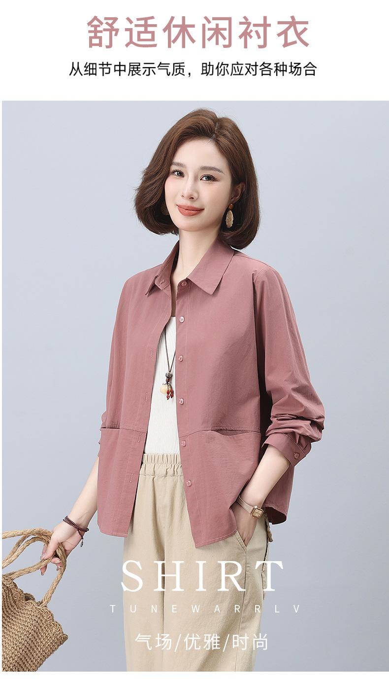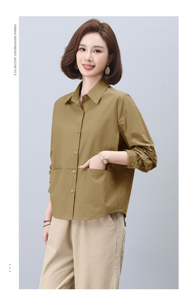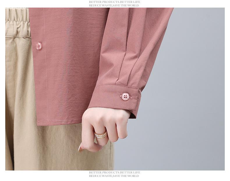 Camisa de mujer 2024 primavera y otoño nueva moda estilo occidental color sólido simple elegante antiedad camisa pequeña casual de manga larga