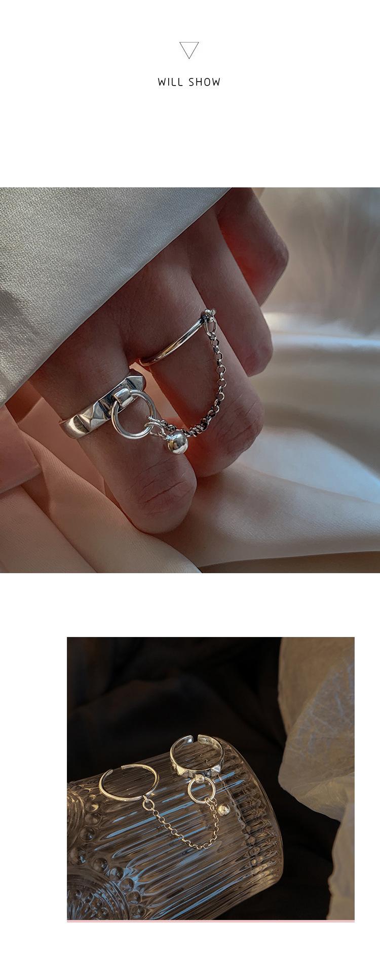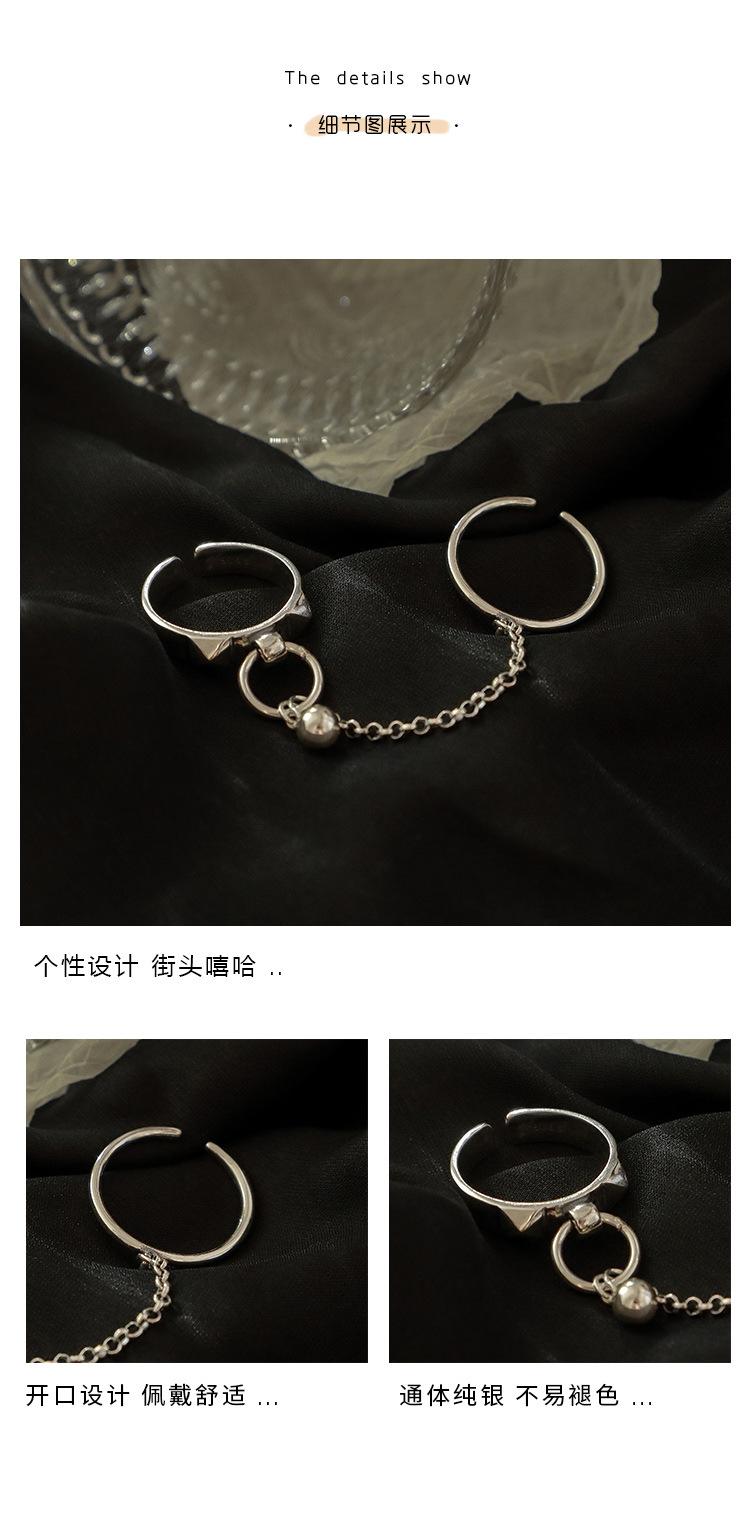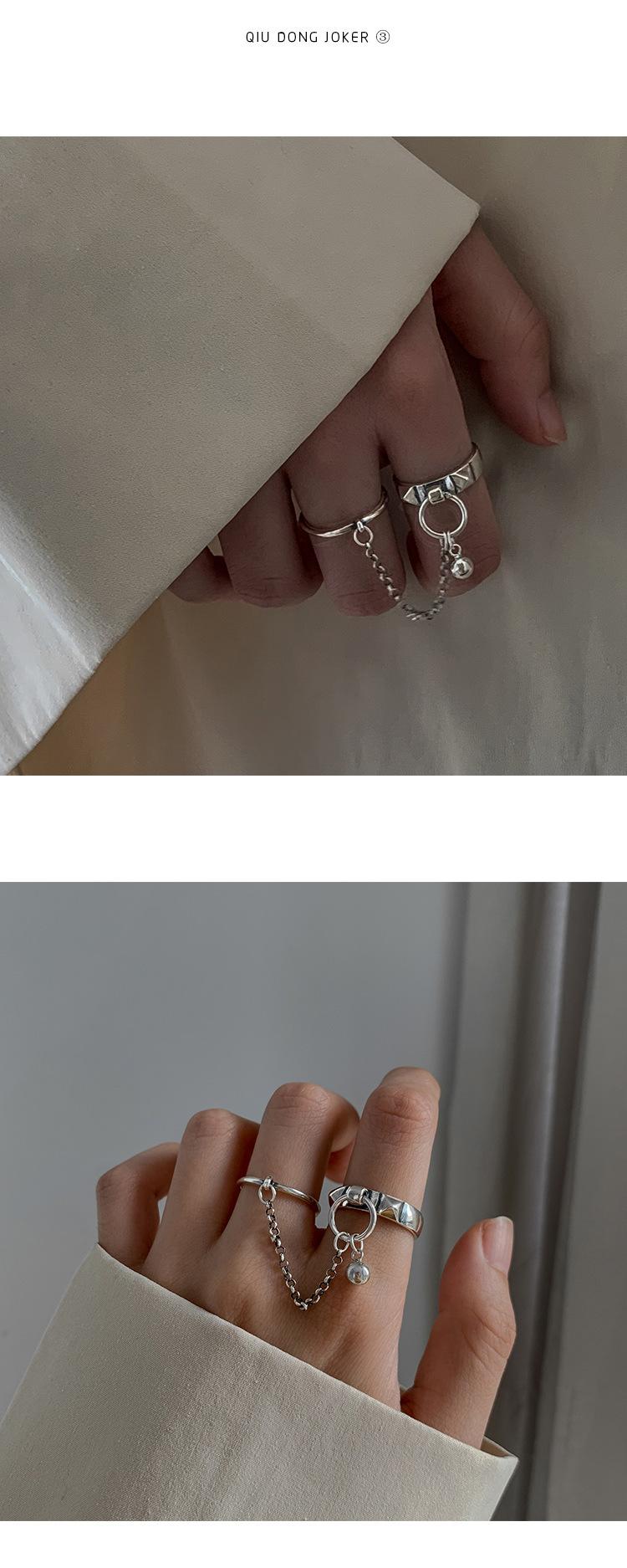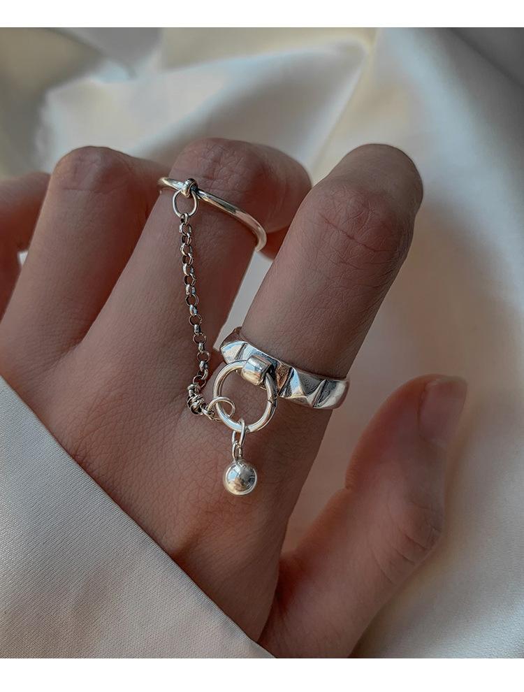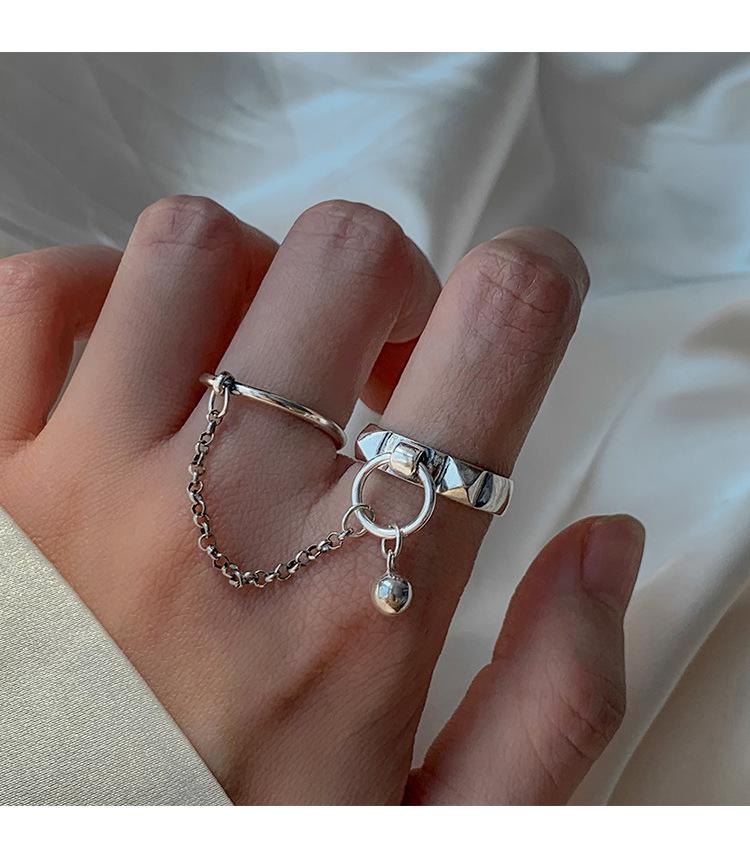 Set de 2 anillos S925 plateados, modernos y elegantes, estilo vintage, moda coreana, borla de cadena, anillo doble ajustable para mujer