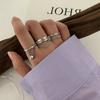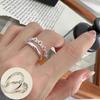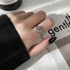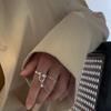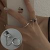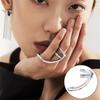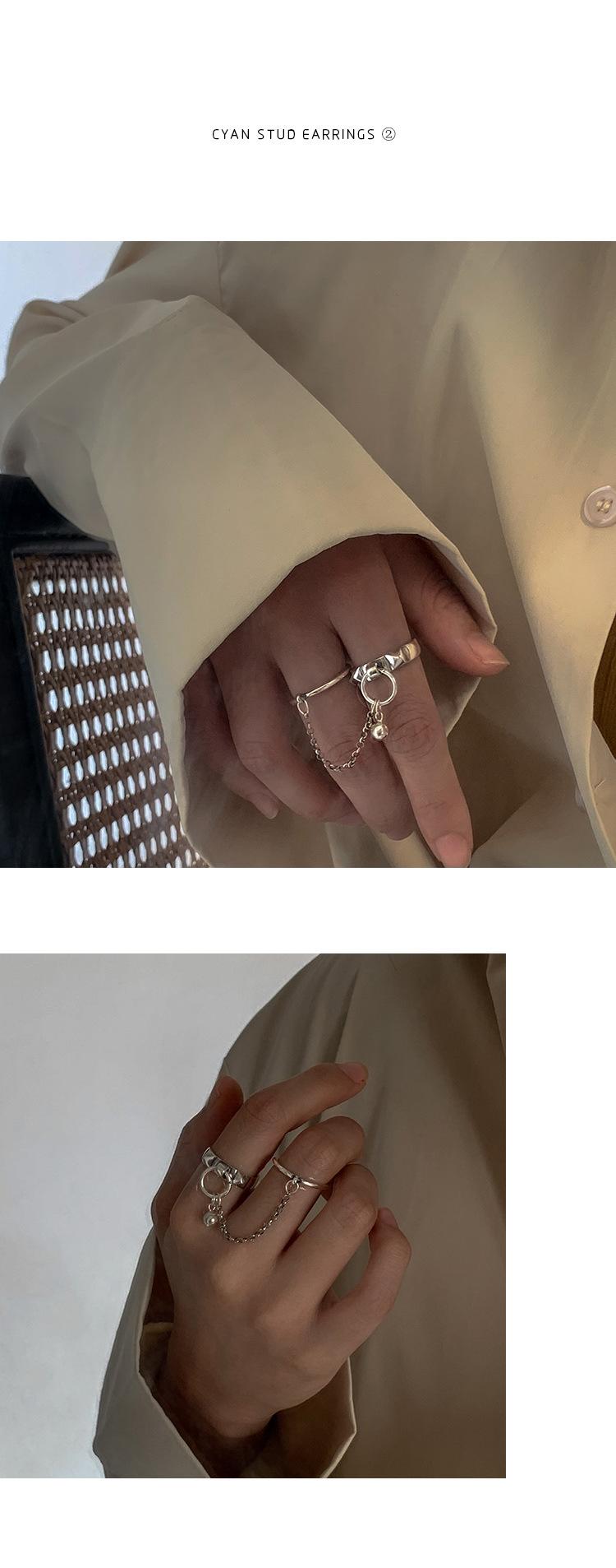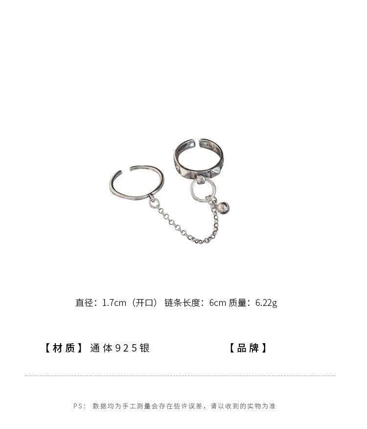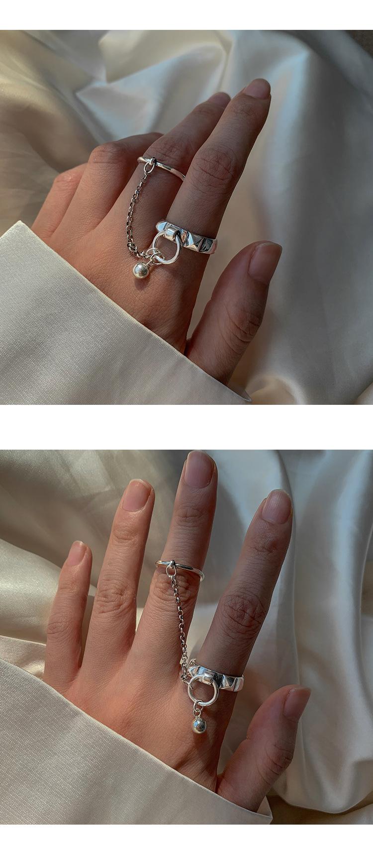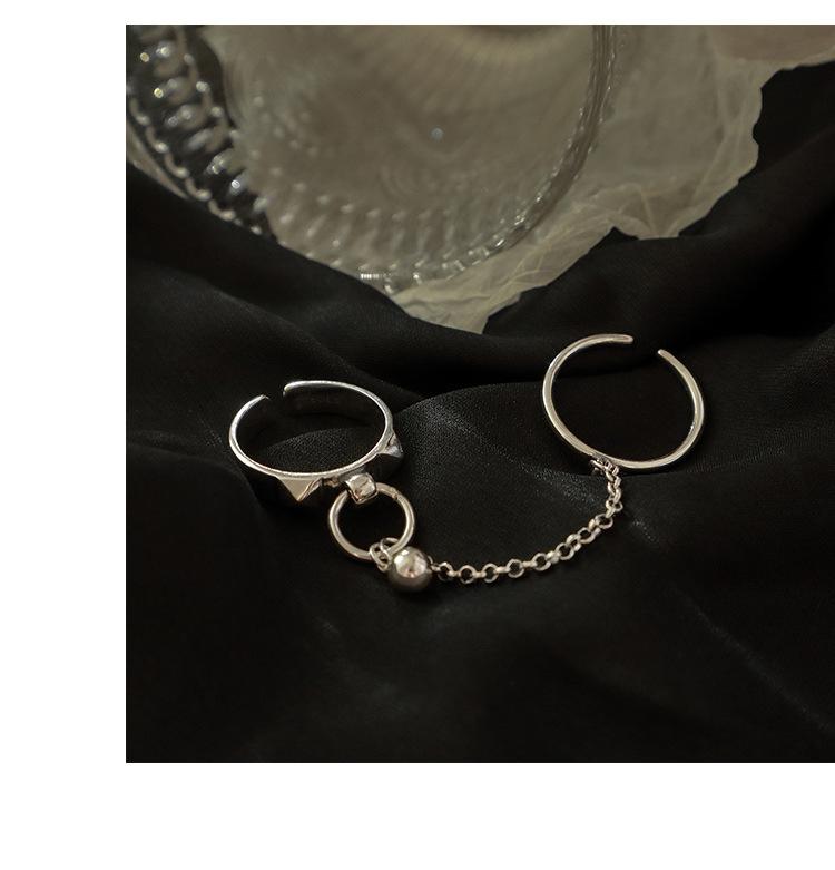 Set de 2 anillos S925 plateados, modernos y elegantes, estilo vintage, moda coreana, borla de cadena, anillo doble ajustable para mujer